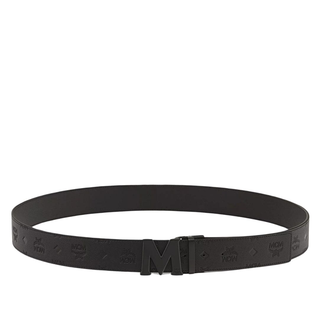 MCM CLAUS M REVERSIBLE BELT 1.75” IN EMBOSSED MONOGRAM LEATHER BLACK