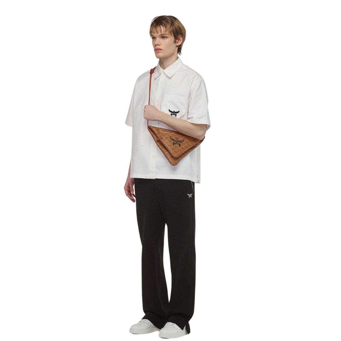 Introducing the exquisite MCM Himmel Triangle Pouch In Lauretos Cognac, where timeless elegance meets ingenious design. Crafted with meticulous attention to detail in South Korea, this triangle pouch showcases the iconic laurel leaves interlinked to form the illustrious Lauretos monogram, symbolizing the brand’s rich heritage.