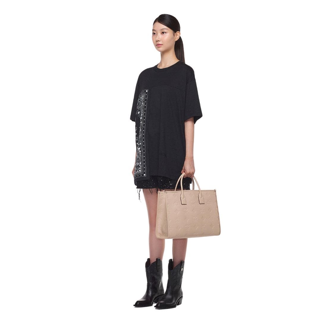 MCM LARGE MÜNCHEN TOTE IN MAXI MONOGRAM LEATHER BEIGE