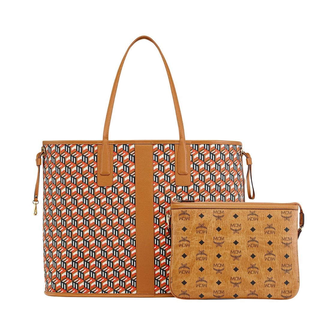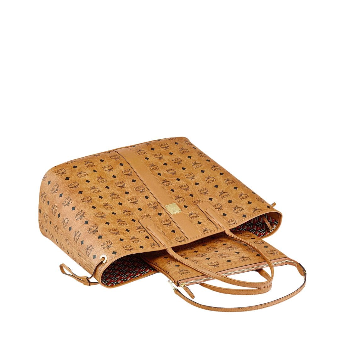 MCM LARGE REVERSIBLE LIZ SHOPPER IN VISETOS COGNAC