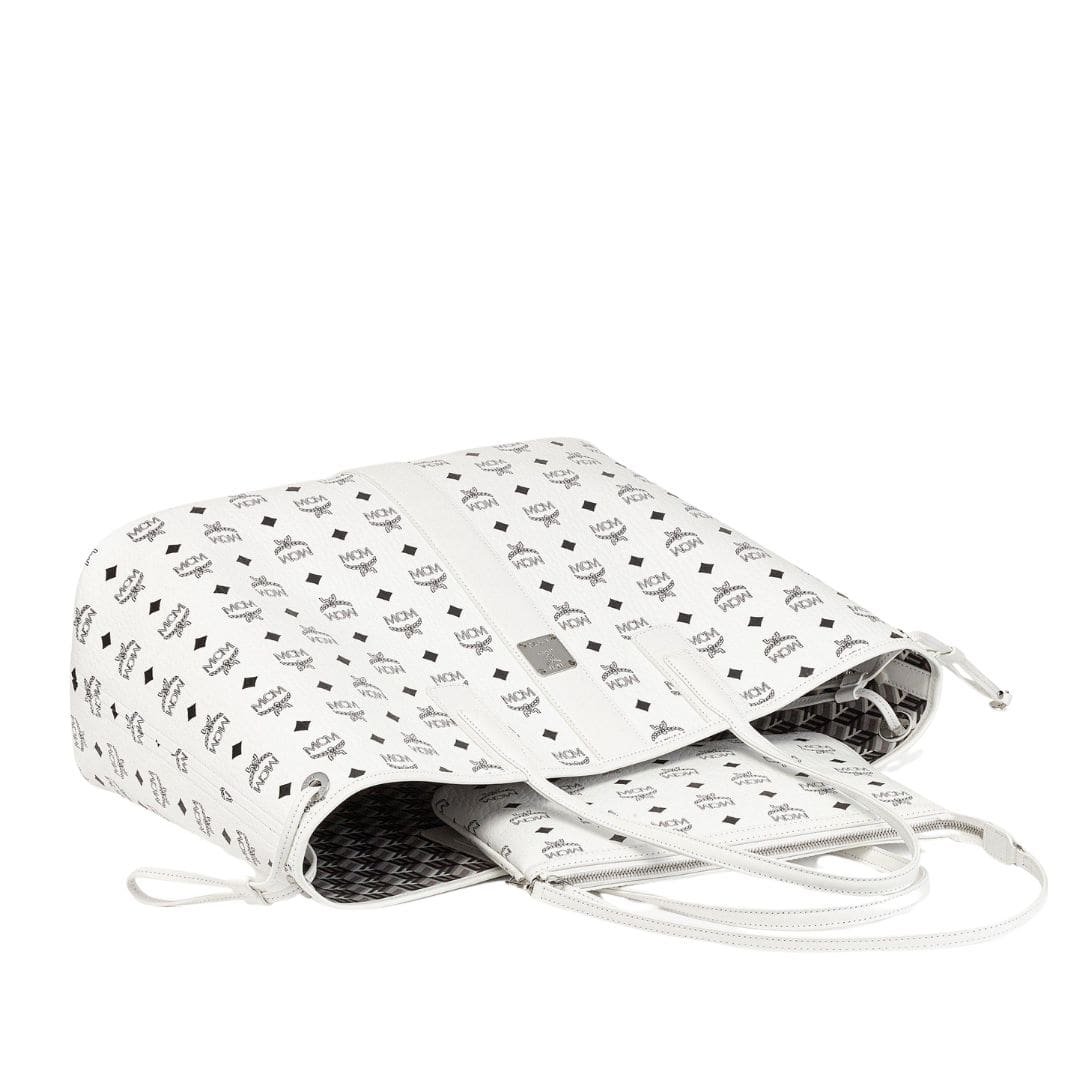 Delve into the timeless elegance and unparalleled versatility of the MCM Large Reversible Liz Shopper In Visetos White. an icon that seamlessly blends sophistication with functionality. Crafted with meticulous attention to detail, this shopper epitomizes the epitome of modern luxury.
