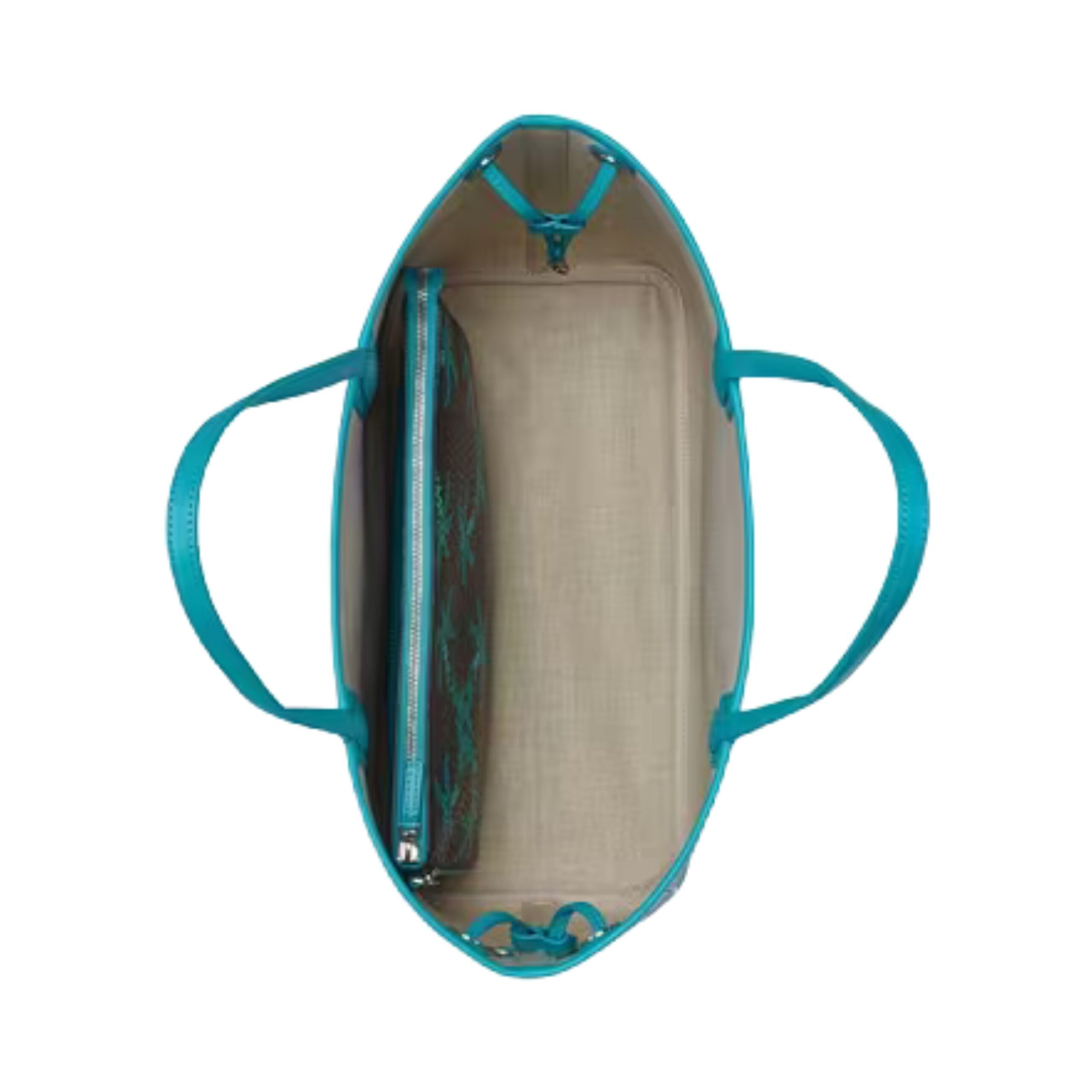 The Liz Shopper features a reversible design, giving you two chic looks in one bag. Effortlessly switch between the signature studded palm canvas exterior and a sleek, minimalist interior pattern, allowing you to adapt your style for any occasion. Its spacious interior is perfect for carrying everything from daily essentials to travel necessities, with a detachable zip pouch included for added organization and versatility.