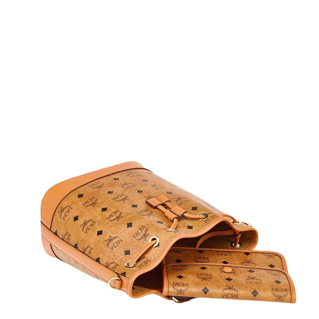 The MCM Dessau drawstring bag In Visetos Cognac pays homage to the Bauhaus movement, blending form and function seamlessly. Its silhouette, named after the historic hub of design, reflects timeless elegance. Crafted with meticulous artisanship, it combines Visetos monogram-coated canvas with supple nappa leather, showcasing the brand’s heritage.