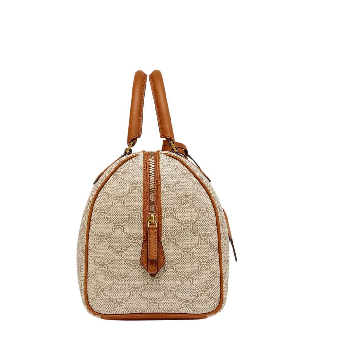 Step into the realm of timeless elegance with the MCM Medium Ella Boston Bag In Lauretos Beige, a masterpiece born from the Golden Age of Munich. Inspired by the iconic Boston bag silhouette, this triumphant interpretation exudes sophistication and charm, embellished with the signature Lauretos monogram.