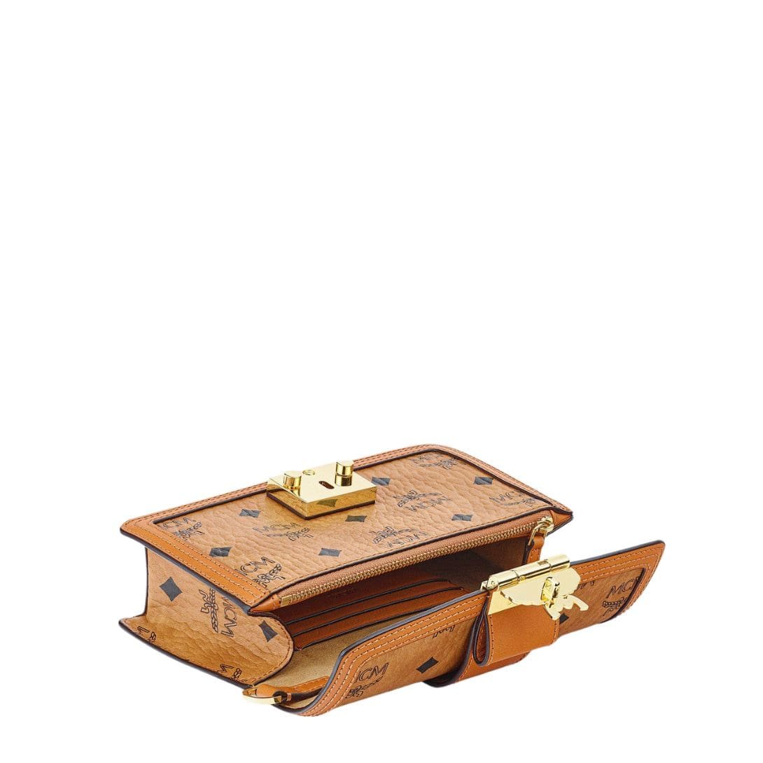 The MCM Mini Tracy Crossbody In Visetos Cognac Bag embodies sophistication and functionality with its exquisite craftsmanship and versatile design. Crafted from the finest Visetos monogram canvas and accented with luxurious vachetta leather detailing, this crossbody bag epitomizes timeless elegance.