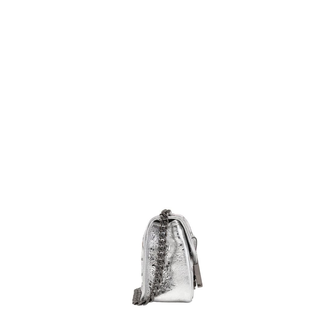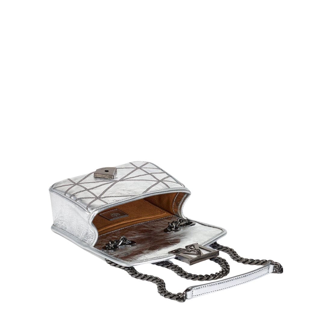 MCM MINI TRAVIA QUILTED SHOULDER BAG IN CRASH CALF LEATHER SILVER