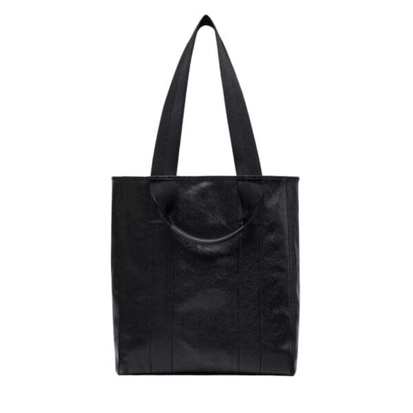One of the standout features of this tote is the embossed logo leather patch on the front, shaped like the Bavarian diamond. This detail pays homage to MCM’s roots in Munich, adding a touch of heritage and authenticity to the design. The matte black metal hardware complements the bag’s sleek aesthetic, while the snap fastenings on the sides allow for easy expansion, providing additional space when needed.