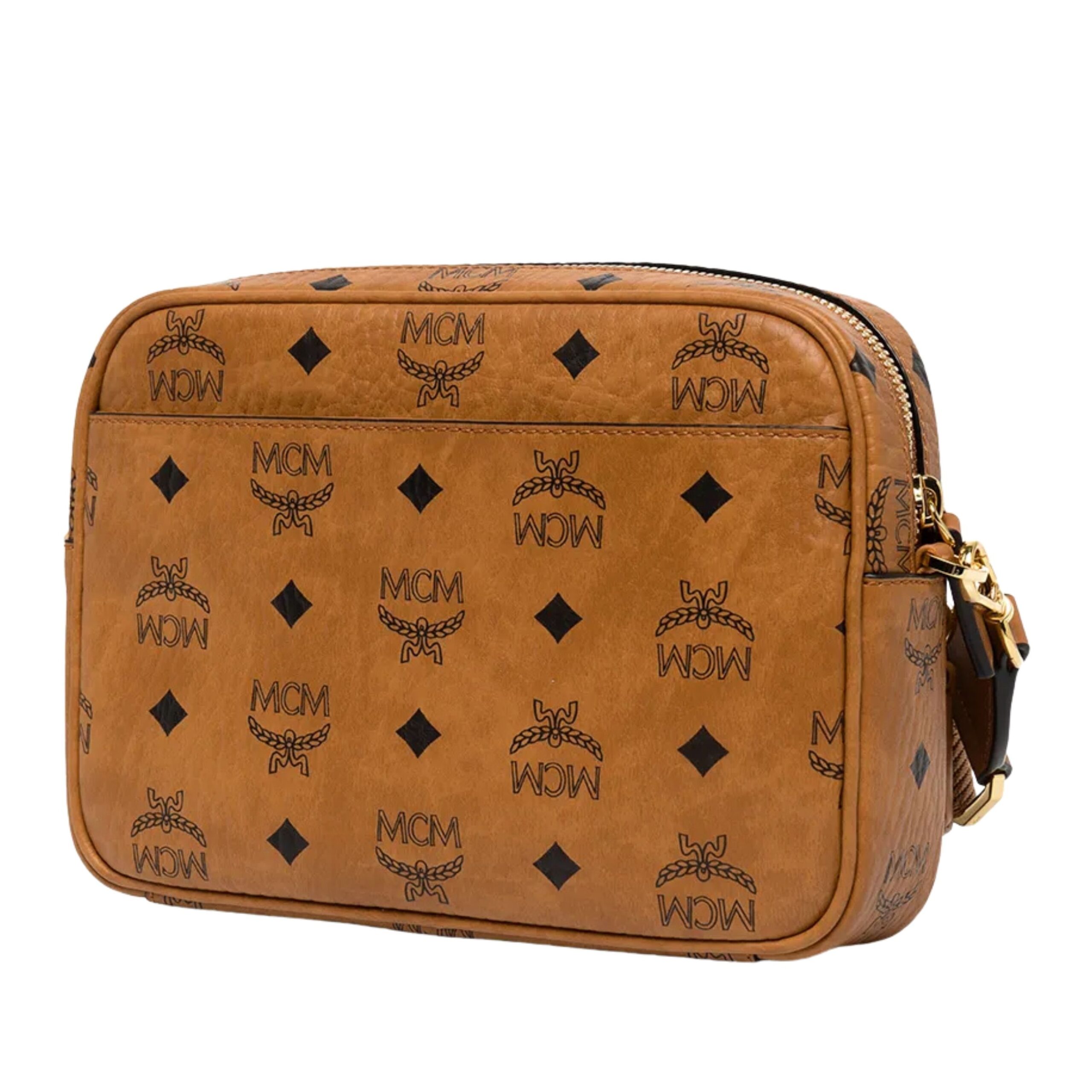 Signature MCM logo prints and polished metal hardware enhance the bag’s sophisticated aesthetic, showcasing the brand’s heritage and attention to detail. The coated canvas exterior is lightweight, scratch-resistant, and easy to maintain, making it as practical as it is stylish.