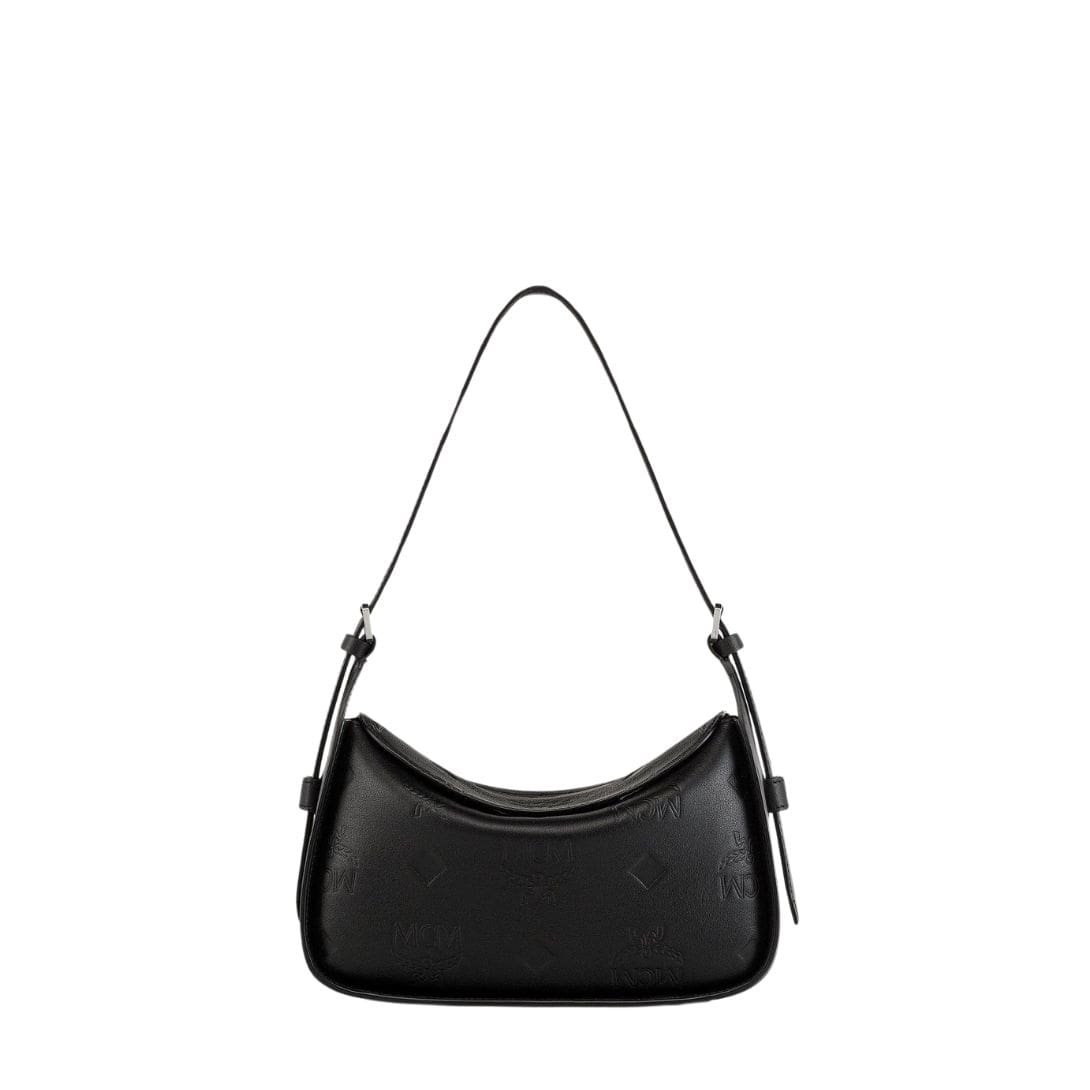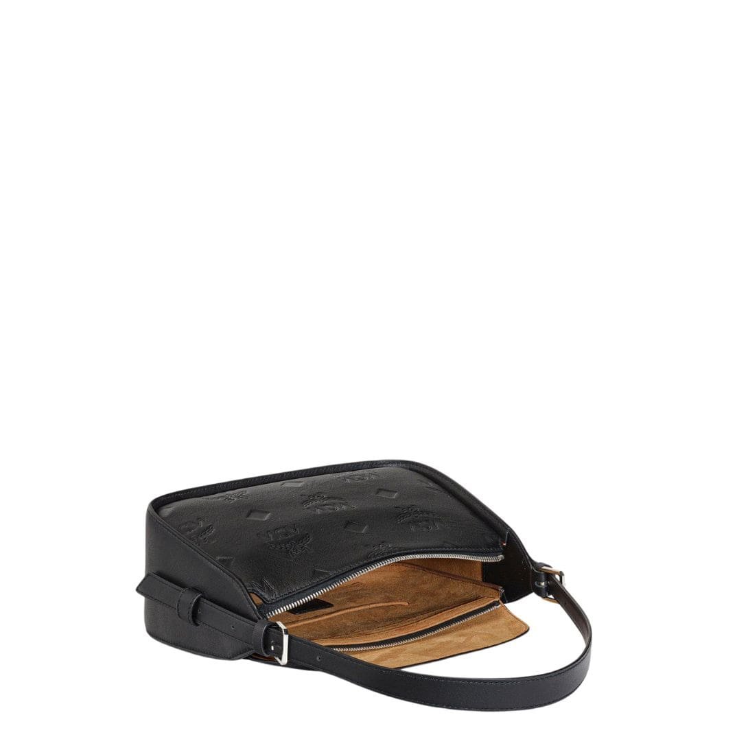 MCM SMALL AREN FLAP HOBO BAG IN EMBOSSED MONOGRAM LEATHER BLACK