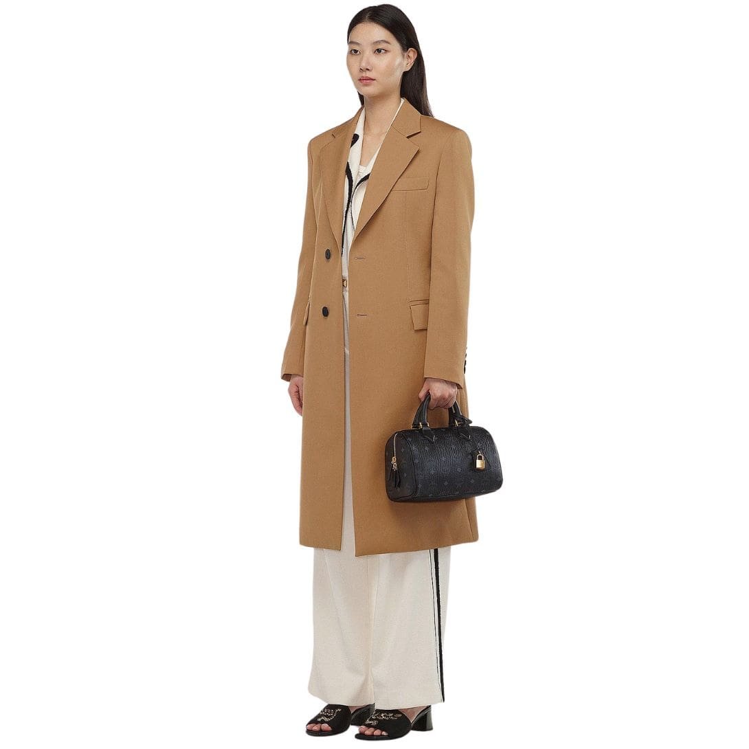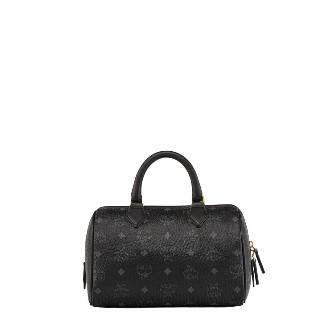 The MCM Small Ella Boston Bag In Visetos Black embodies the essence of sophistication, originating from Munich’s Golden Age. Inspired by the era’s travel trunks, it features a leather hang tag and logo-engraved metal padlock, reminiscent of its jet-setting heritage.