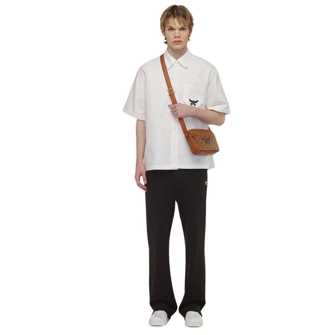 Presented front and centre is the signature MCM insignia, standing out in a contrasting hue and serving as a bold statement of luxury and prestige. Natural Nappa leather accents, including a smooth shoulder strap, complete the companion, offering both durability and style.