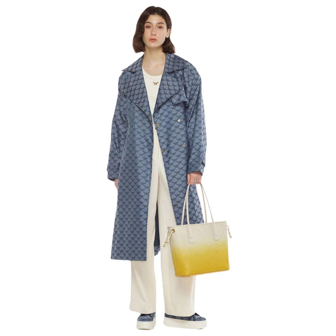 Indulge in the celestial beauty of the MCM Small Liz Shopper In Gradation Monogram Leather Yellow, where the tranquil hues of the sky inspire an ethereal gradient that gracefully shifts vertically across its embossed monogram surface. Crafted from luxurious natural Nappa leather, this petite shopper exudes elegance and sophistication.