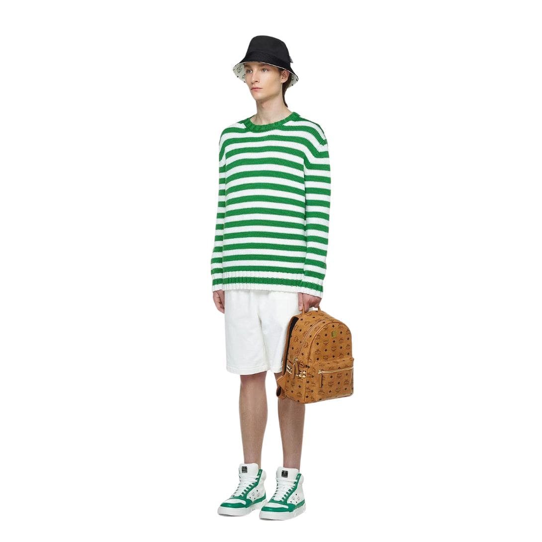 Completing the luxurious aesthetic is the 24k gold-plated metal hardware, adding a hint of opulence to every detail. Handcrafted with precision in South Korea, each Small Stark Side Studs Backpack is a true work of art, reflecting MCM’s dedication to quality and excellence.