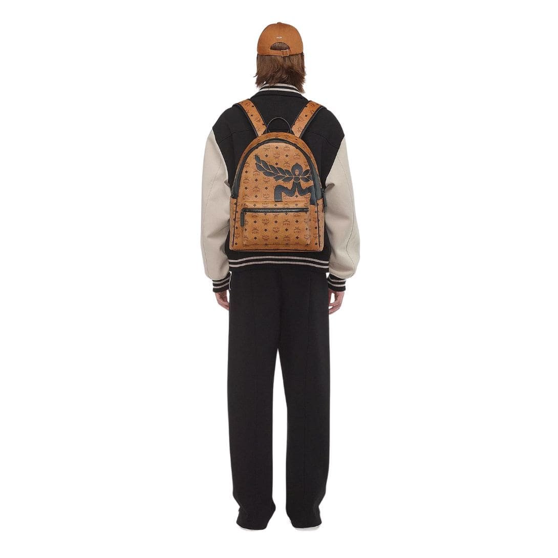 MCM STARK BACKPACK IN MEGA LAUREL VISETOS COGNAC