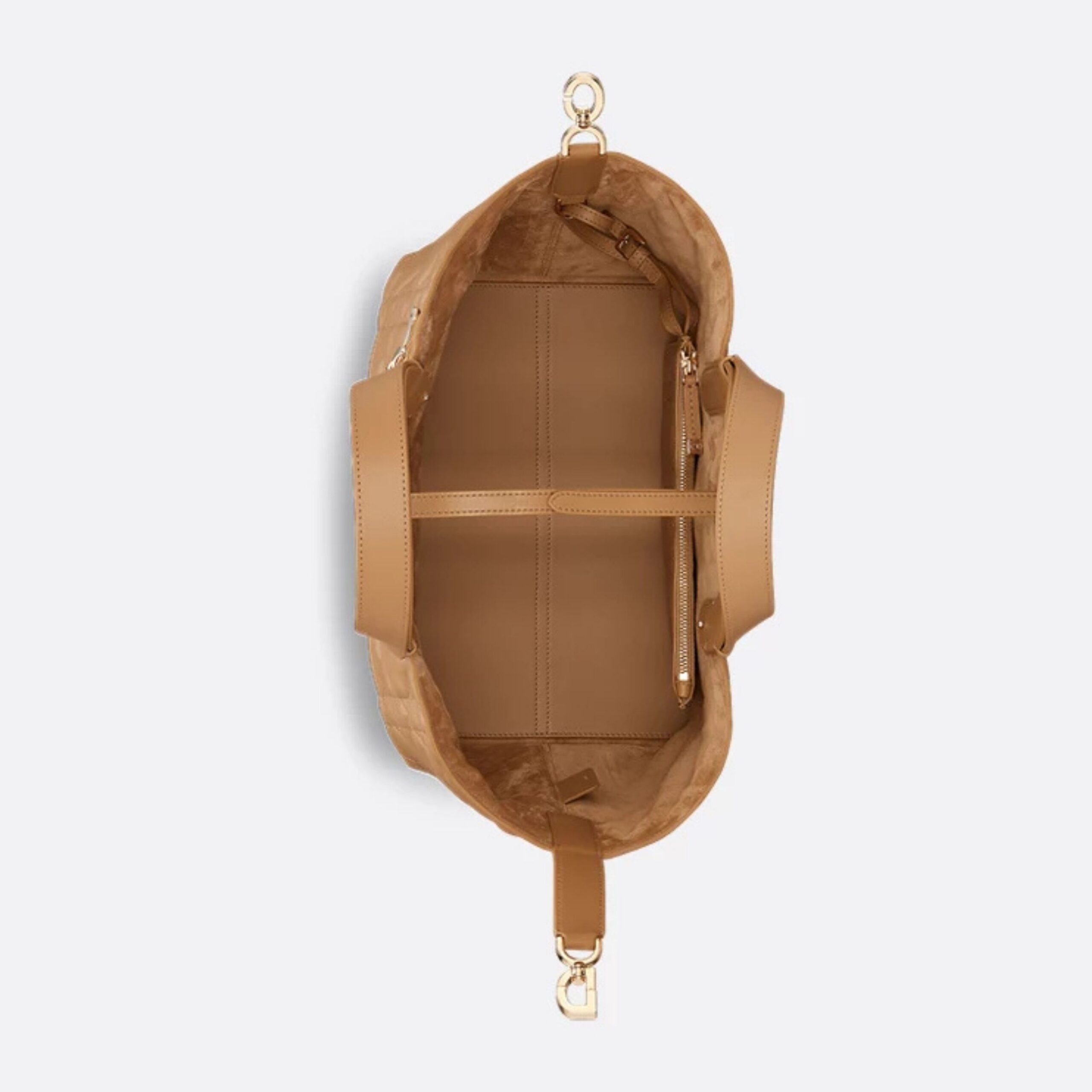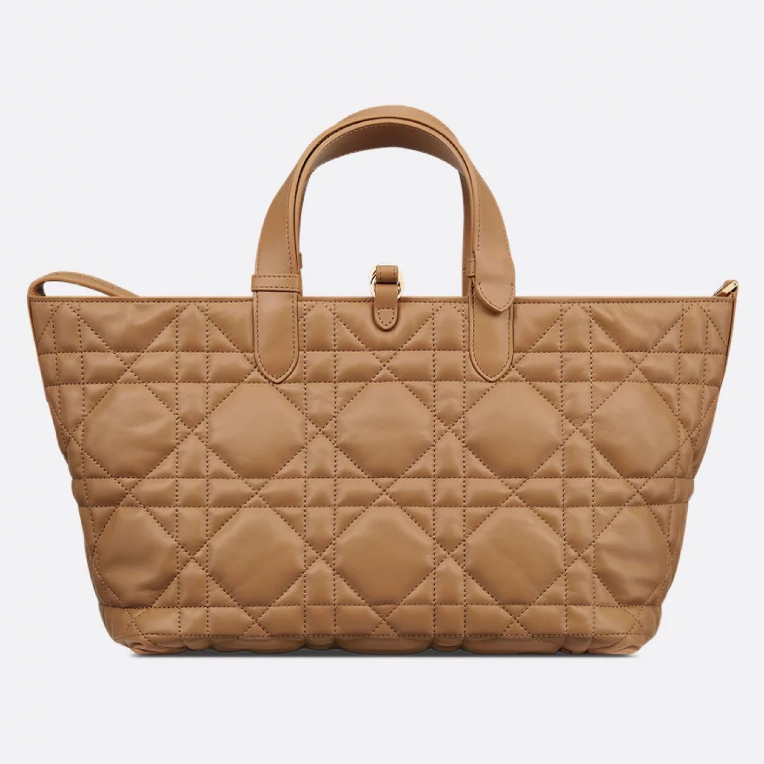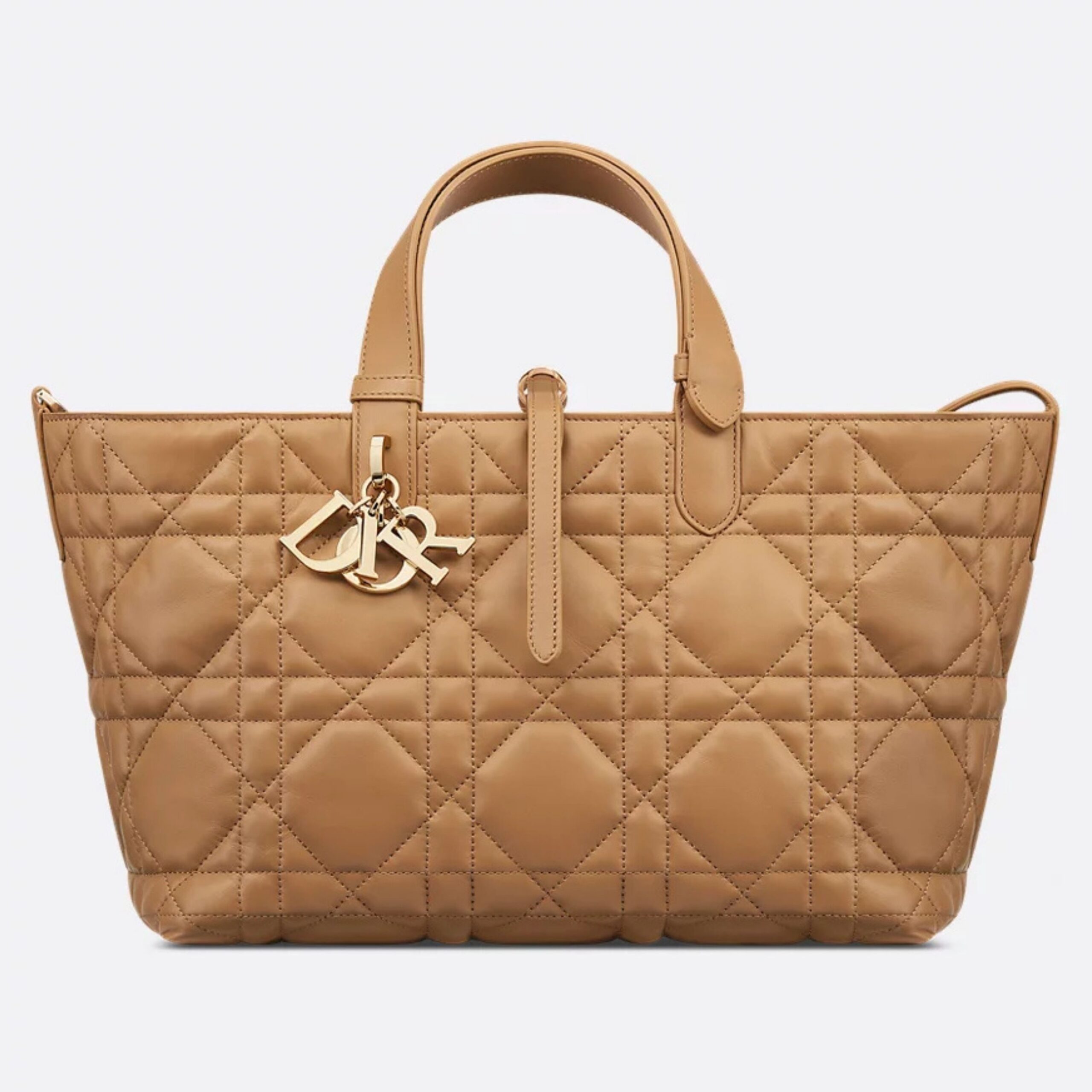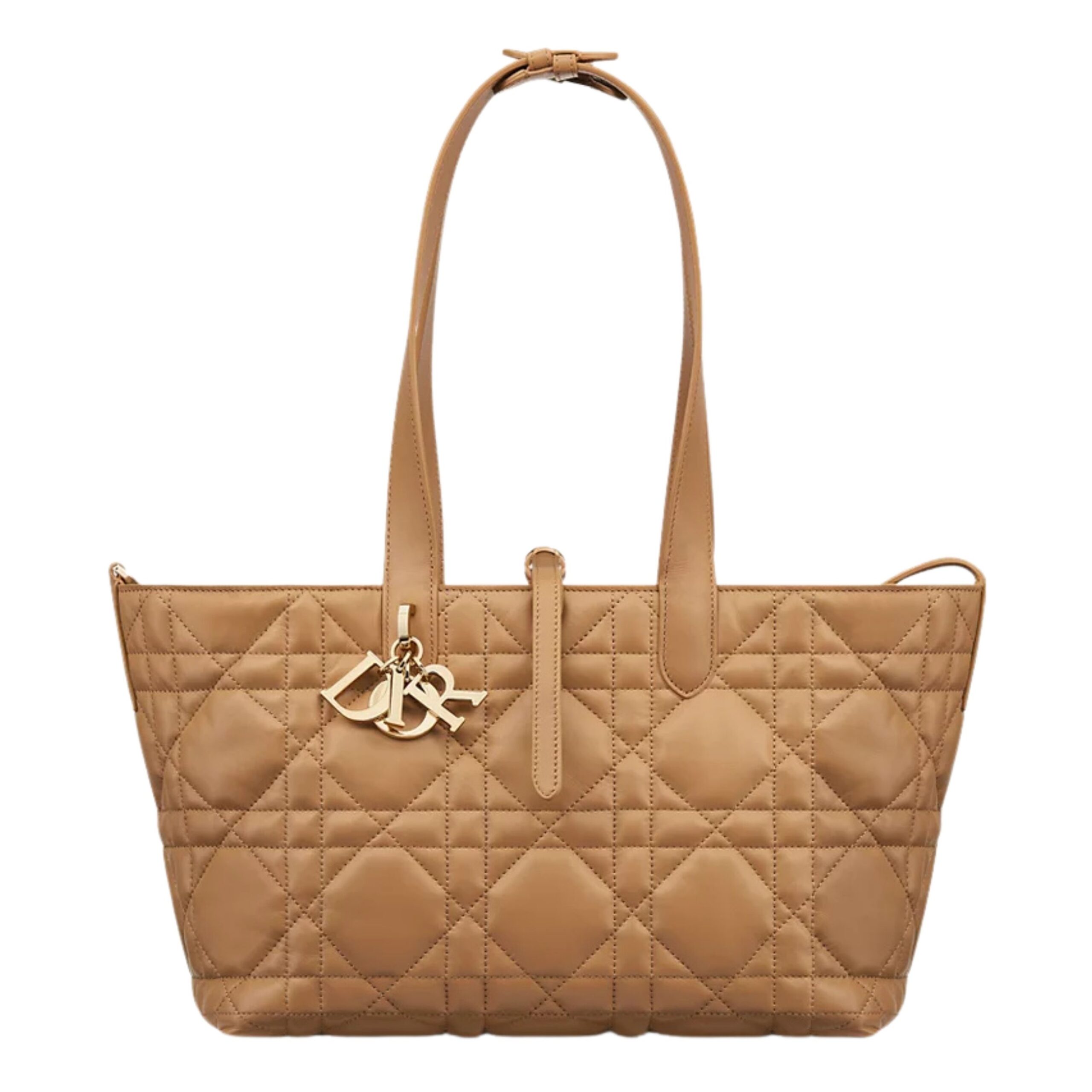 Designed to transition seamlessly from day to evening, the Medium Dior Toujours Bag features a spacious interior with a suede lining and a removable zip pouch that helps organize your essentials. The bag’s open design offers easy access while the leather strap closure with a CD-lock clasp ensures security and style. The signature “Dior” charms gently dangle from the handle, providing a delicate and unmistakable brand touch.