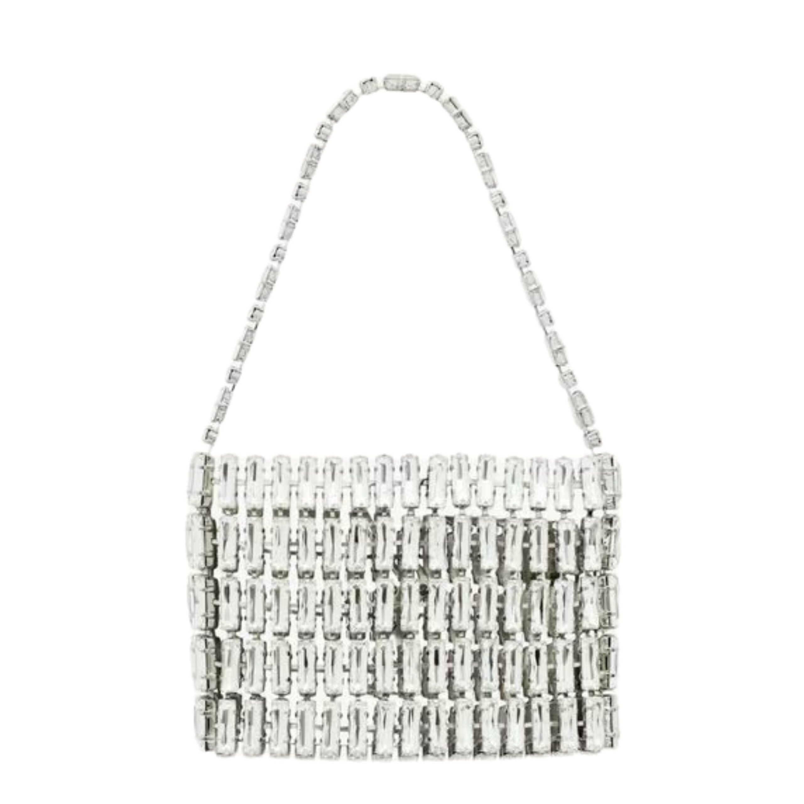 Designed for versatility, this bag can be carried as a clutch or worn crossbody using a detachable chain or strap, allowing you to move effortlessly from formal events to after-parties. The hardware details are typically crafted in silver or gold tones, complementing the brilliance of the crystals and adding a sophisticated contrast.