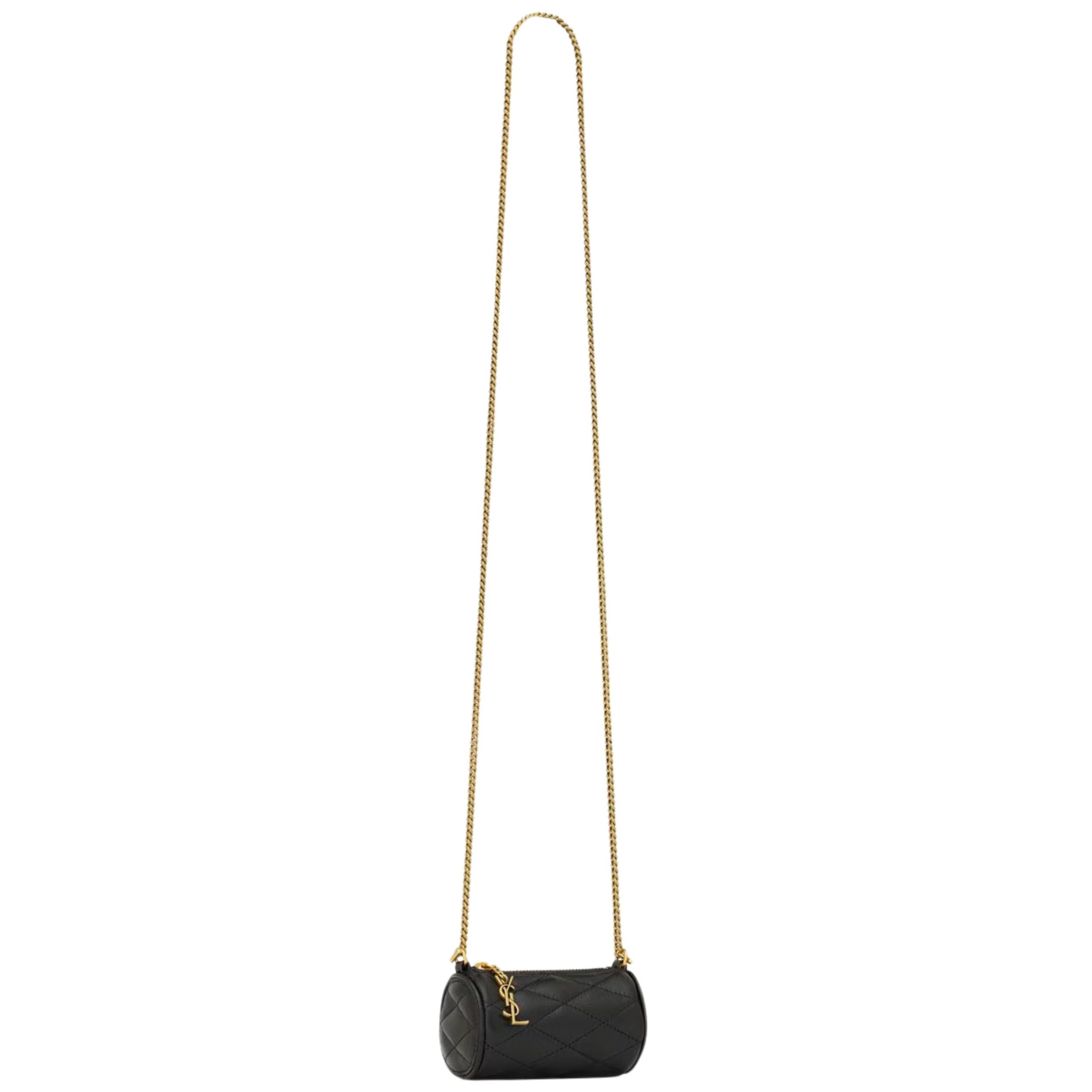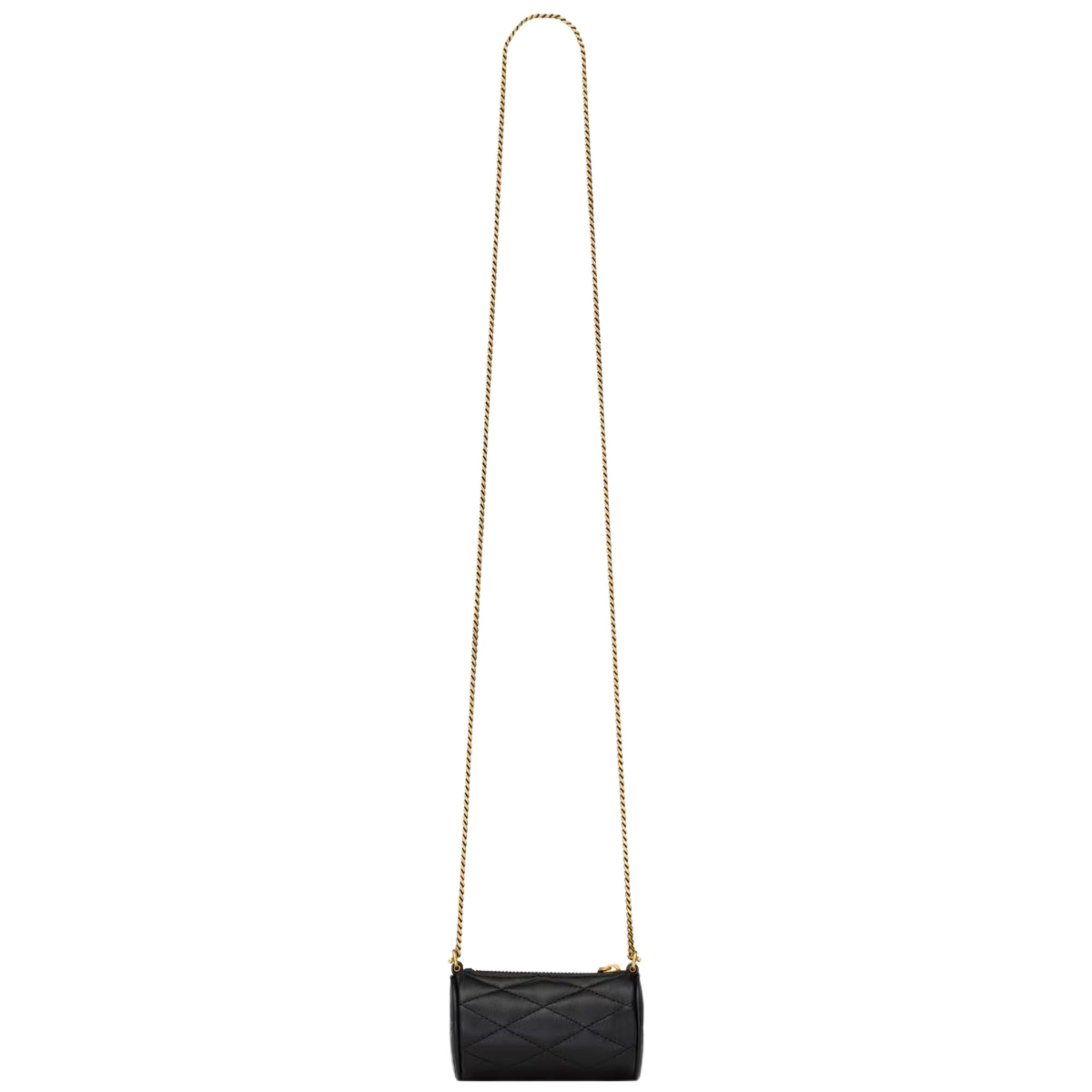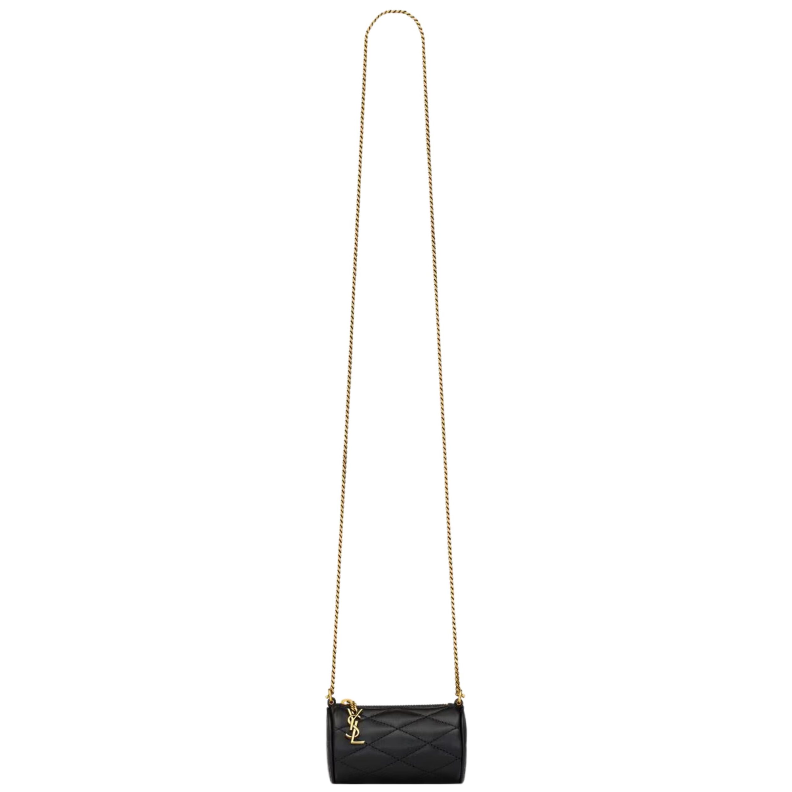 The Micro Sade Tube in Lambskin is a refined, minimalist statement piece that encapsulates Saint Laurent’s timeless sophistication in a compact form. Crafted from luxurious lambskin leather, the bag showcases a supple texture and elegant finish that radiates understated elegance. The sleek, cylindrical silhouette is both distinctive and versatile, making it a perfect addition to any modern wardrobe.