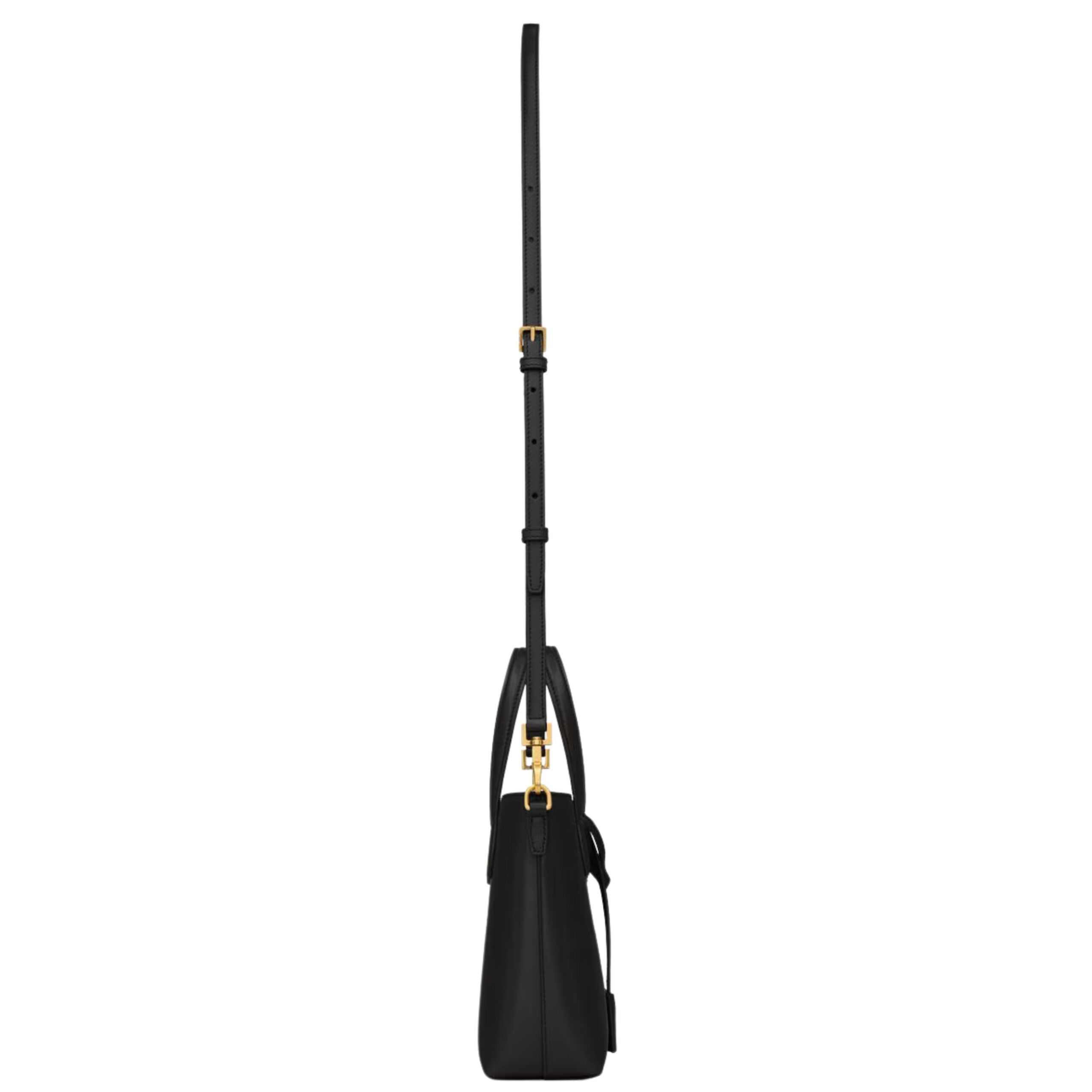 Despite its petite size, the Mini Toy Shopping bag is thoughtfully designed to be functional. The minimalist exterior features Saint Laurent’s signature gold-tone Cassandre logo embossed subtly, offering a touch of classic branding without overwhelming the clean lines of the piece. Dual top handles add to its charm, while the adjustable and detachable leather strap provides versatile carrying options — from hand-carry to crossbody.