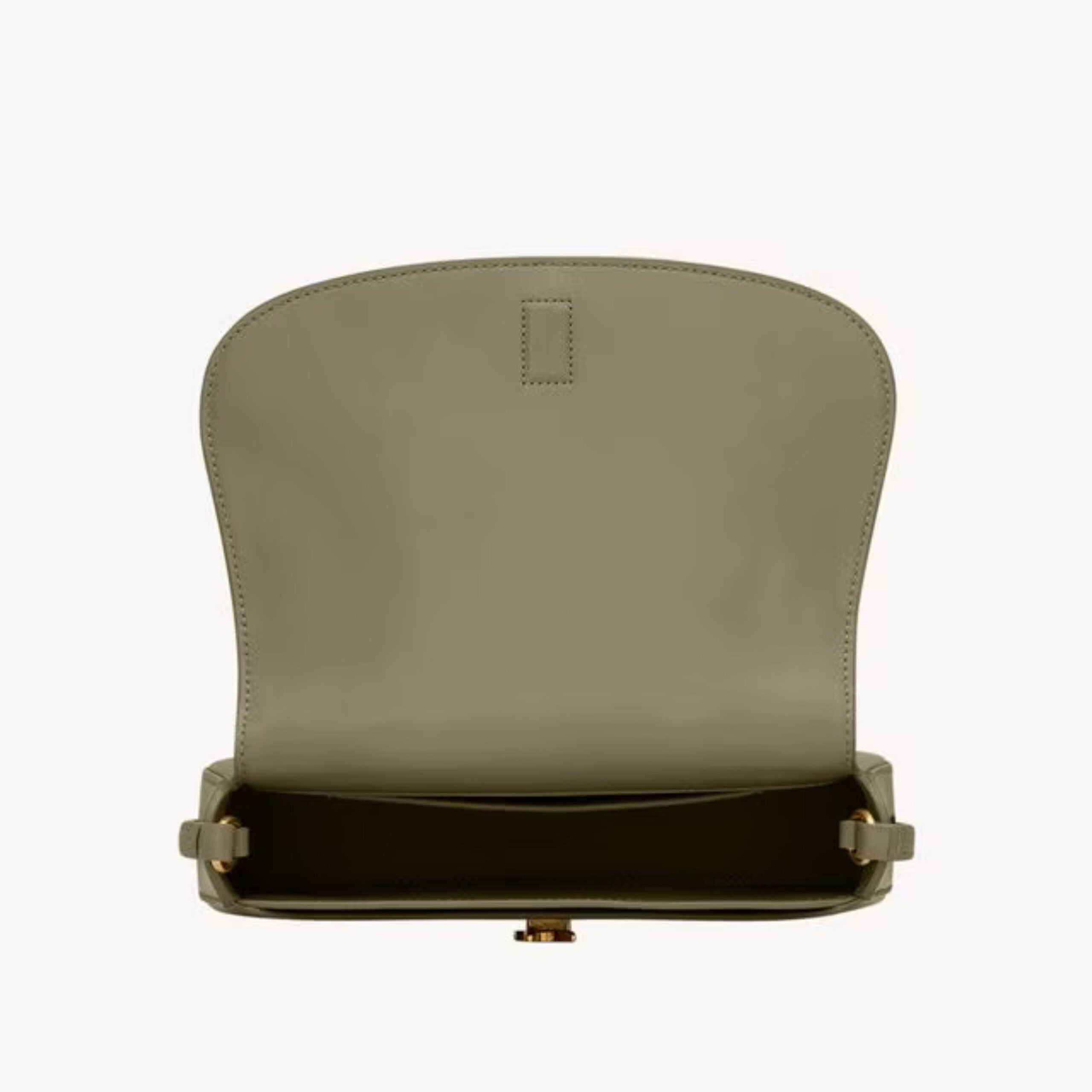 The bag is equipped with a leather top handle and a detachable shoulder strap, offering versatile carry options whether worn over the shoulder, crossbody, or carried by hand. Inside, it offers a compact yet thoughtfully arranged interior to keep your essentials organized—perfect for a phone, cardholder, keys, and a few small extras.