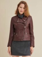 Online Only – Contrast stitching and a chic asymmetrical placket lend a contemporary vibe to this classic cycle jacket from Wilsons Leather. It’s crafted using buttery-soft material for a fit and feel you’ll love. All our Wilsons brand jackets are timeless basics with a comfortable fit. Runs true to size.