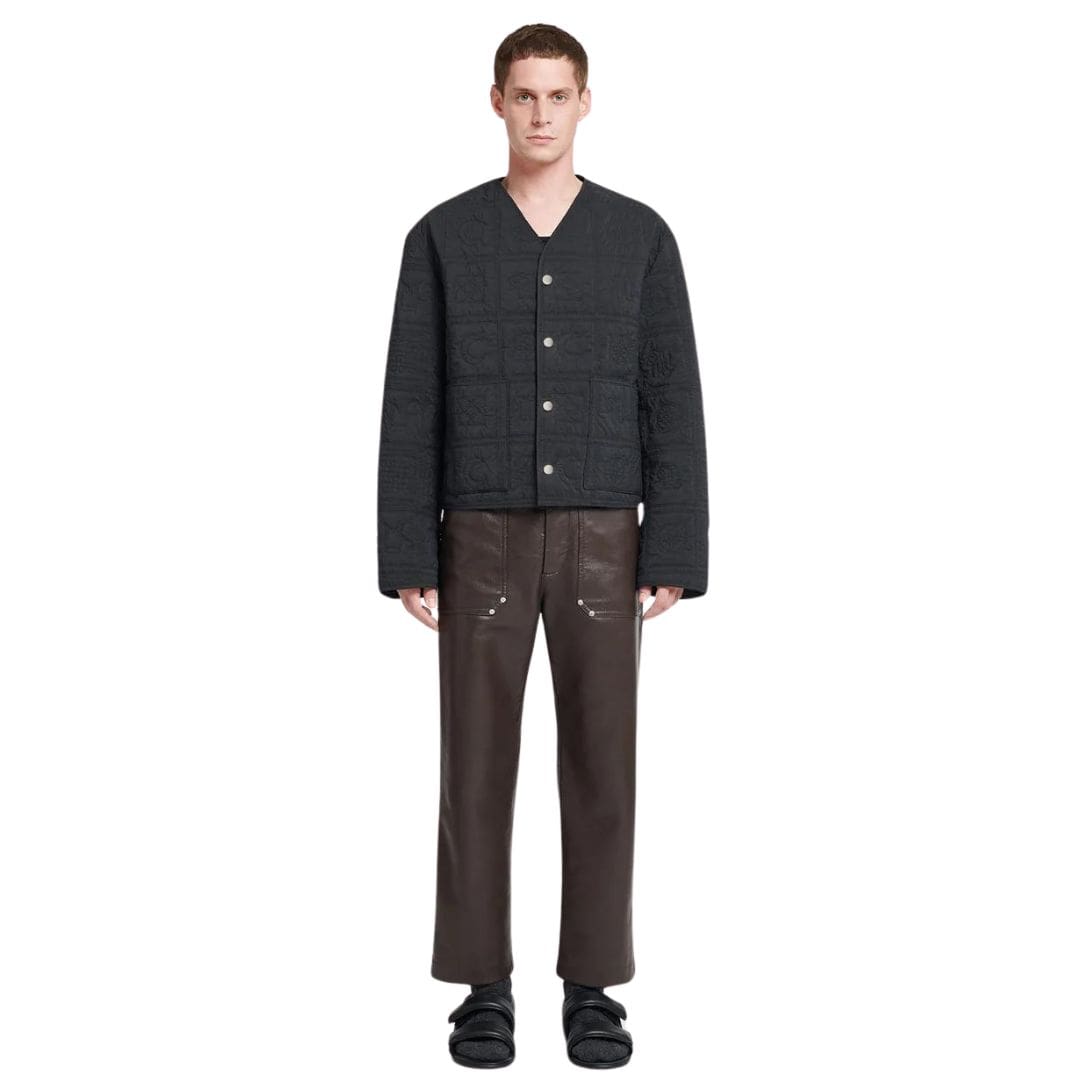 The NANUSHKA VICO QUILTED TECH POPLIN JACKET BLACK embodies the brand’s new heritage ethos, blending contemporary style with traditional Hungarian motifs. Crafted from utilitarian tech poplin, this jacket boasts a distinctive boxy silhouette with a collarless design, offering a modern interpretation of classic outerwear.