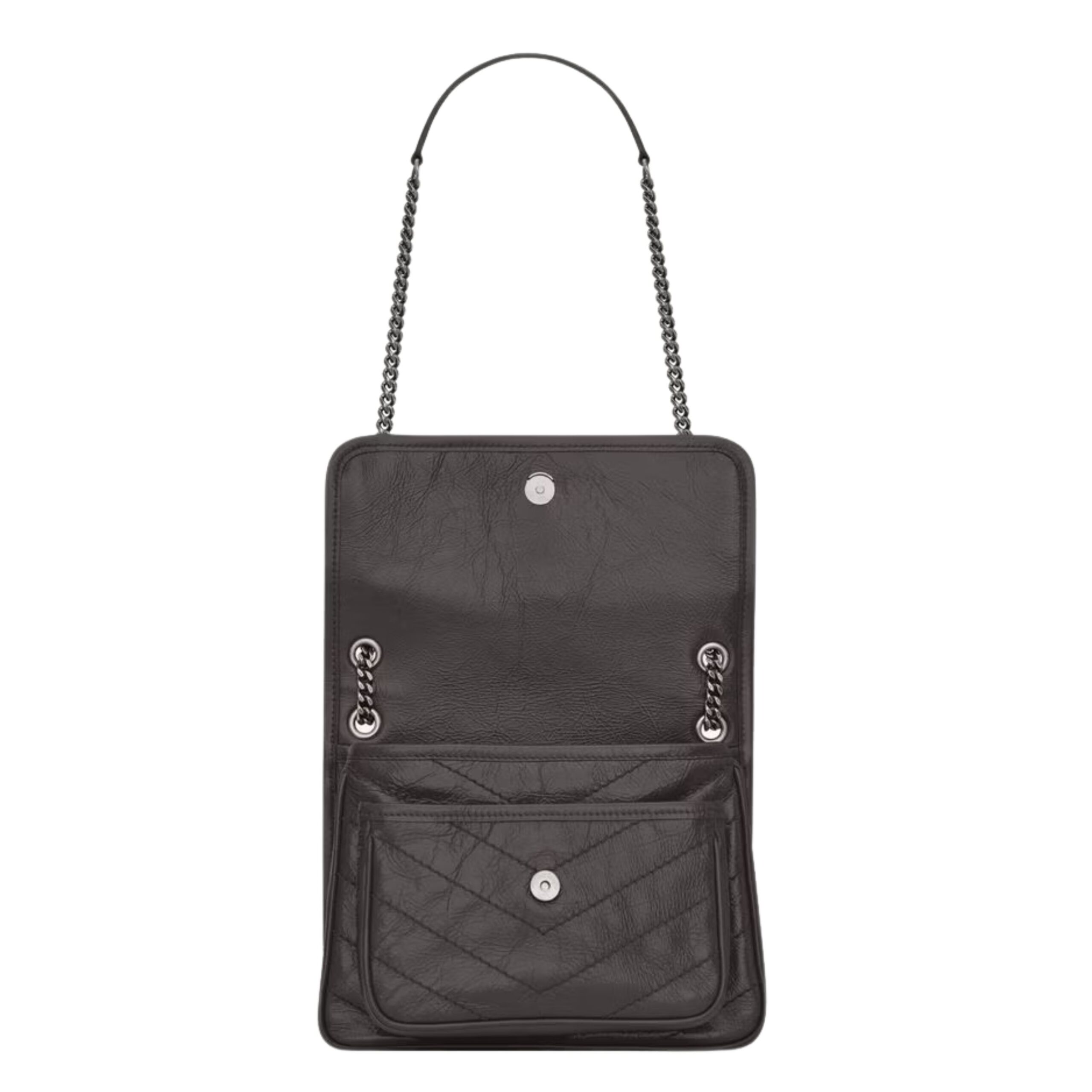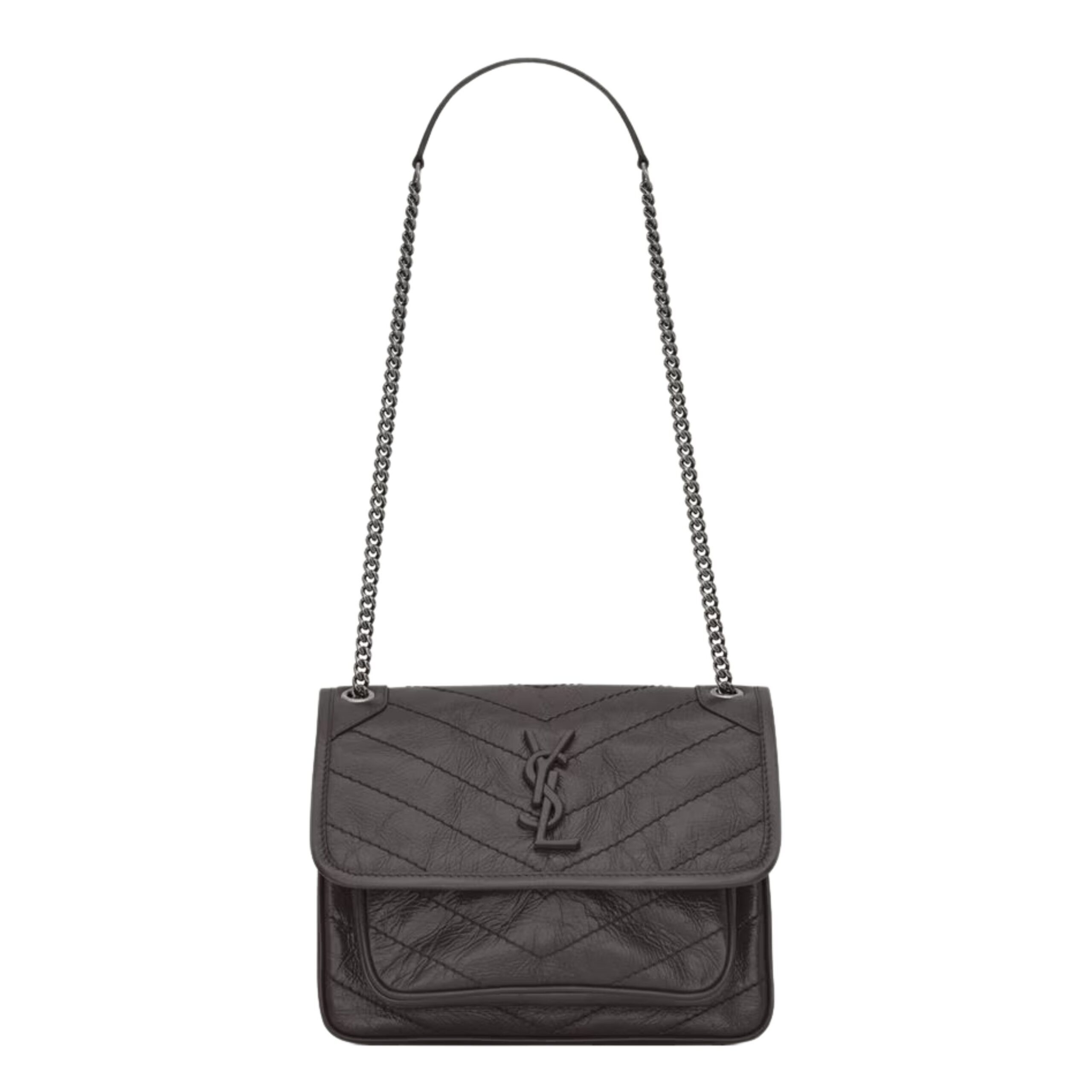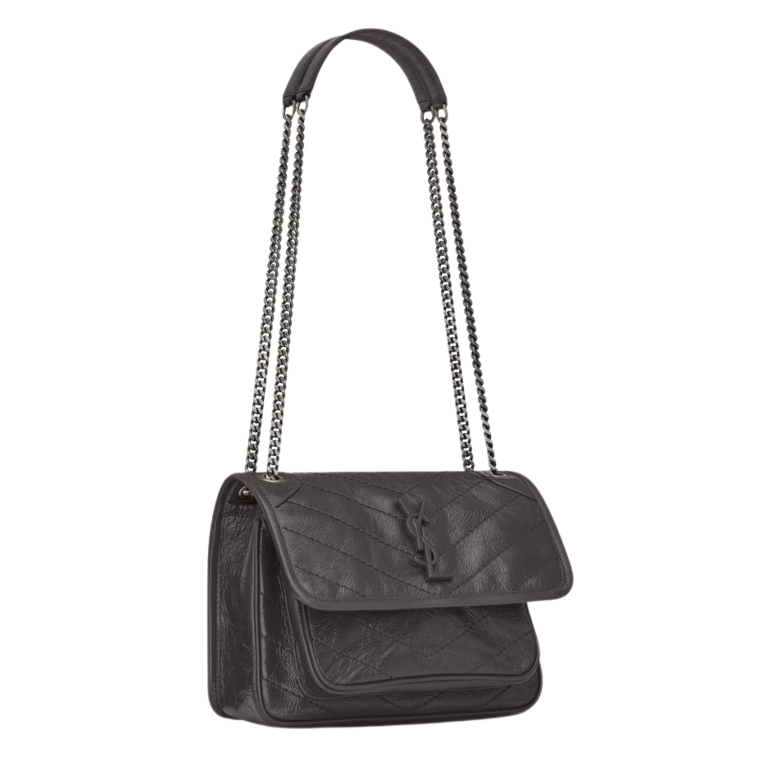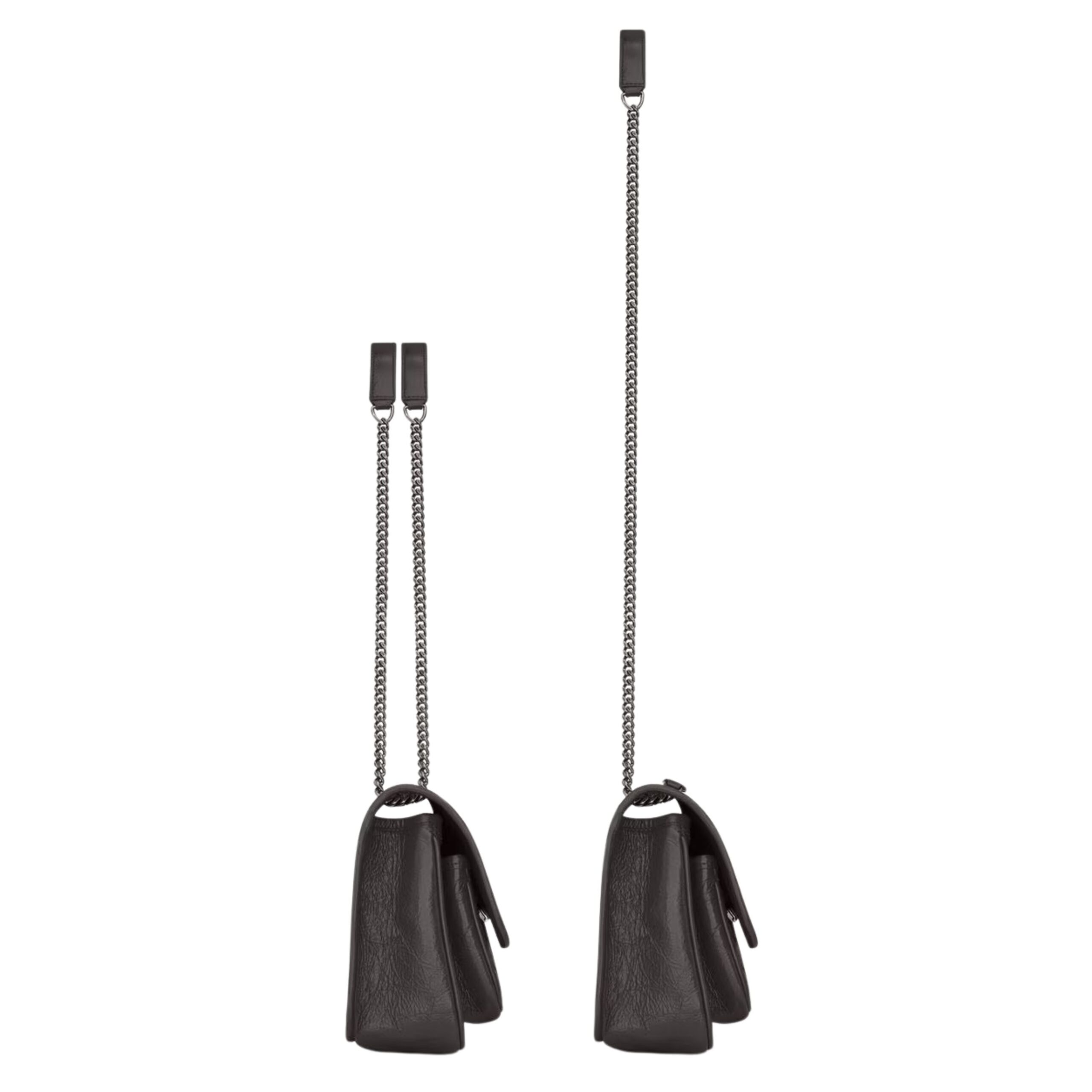 The NIKI BABY IN VINTAGE LEATHER is an iconic statement piece from SAINT LAURENT, blending edgy sophistication with timeless Parisian flair. Crafted in luxuriously soft vintage-finish crinkled leather, this compact shoulder bag is designed for modern women who appreciate elegance with an attitude. The distressed leather not only offers a rich texture and unique character but also enhances the bag’s effortlessly cool, lived-in look—perfect for transitioning seamlessly from day to night.