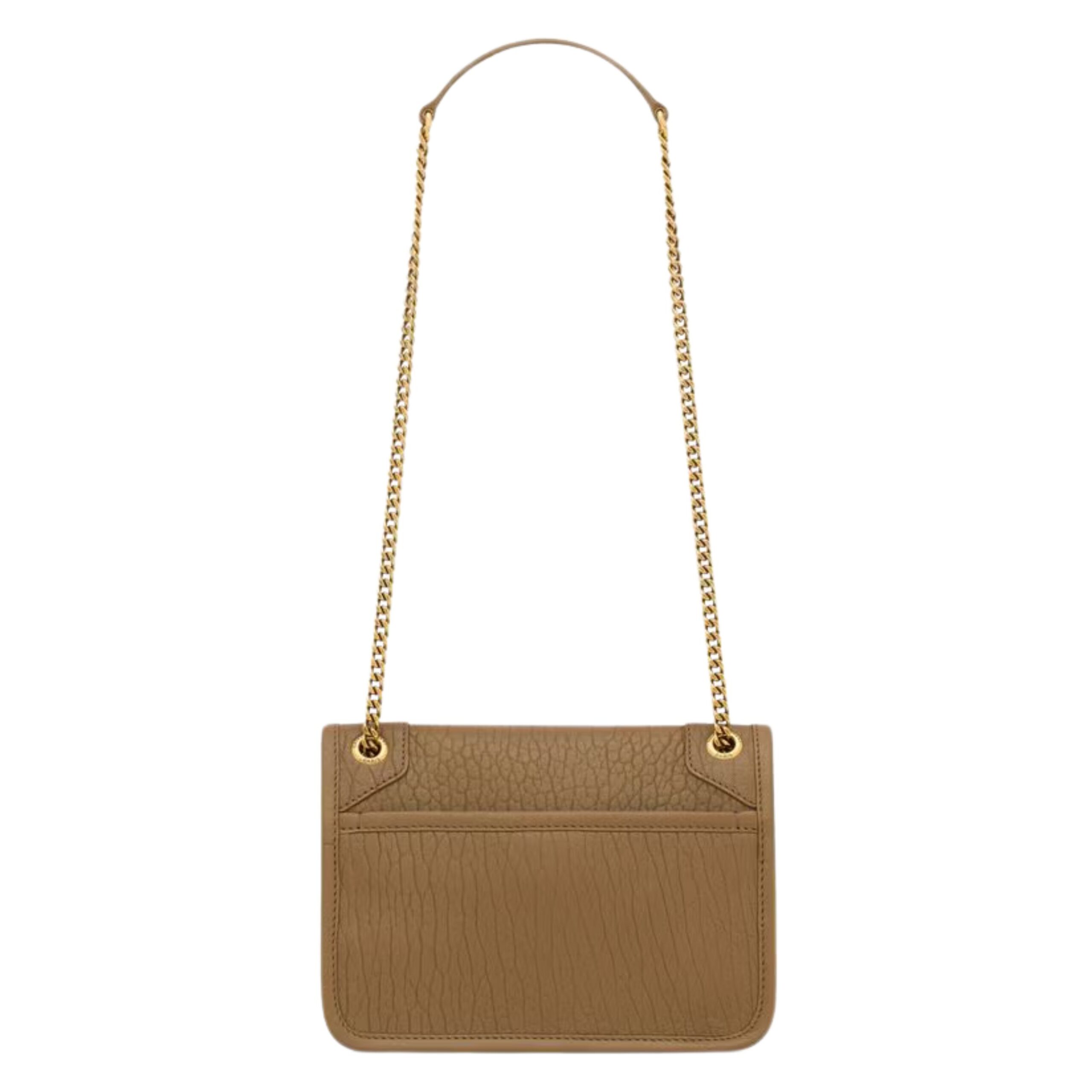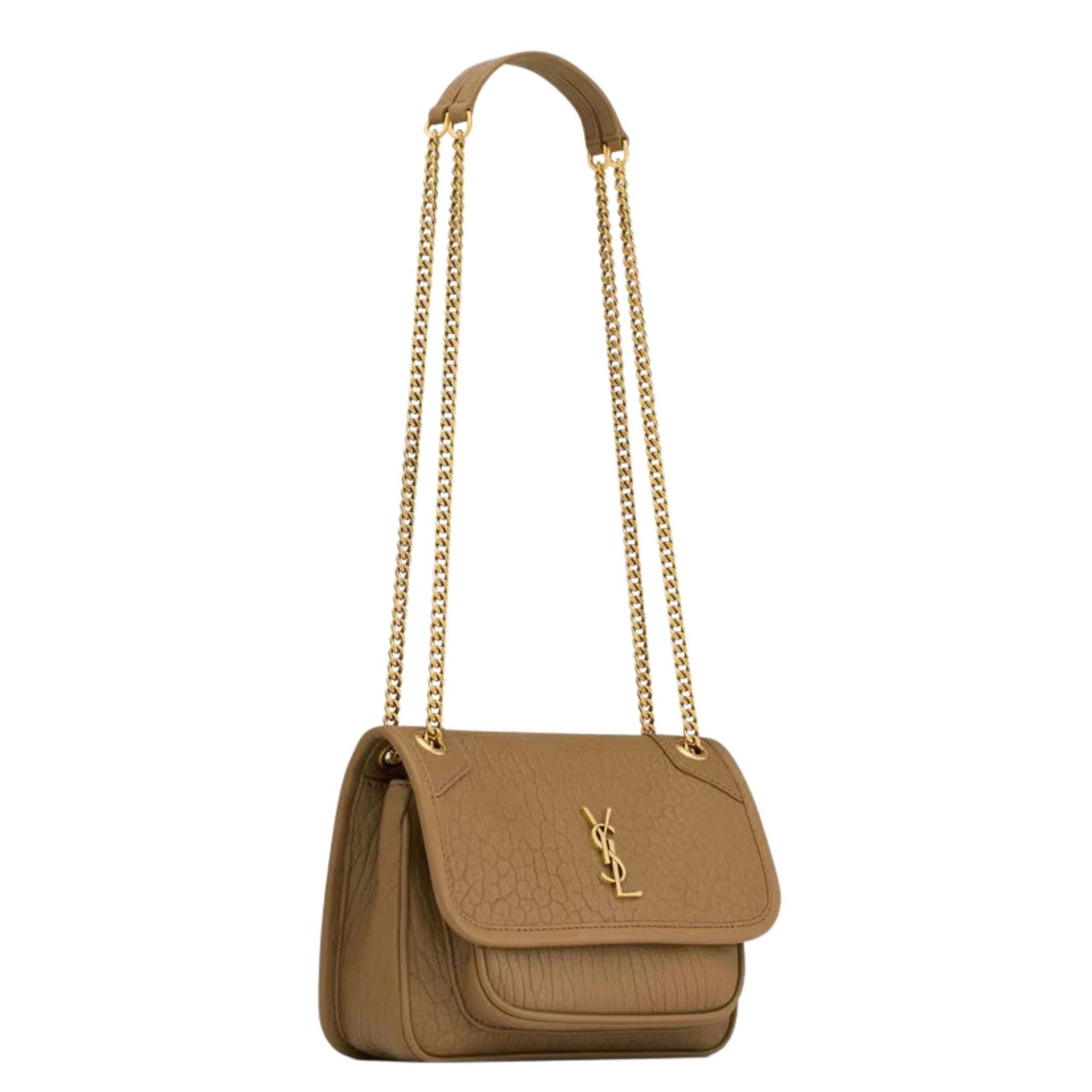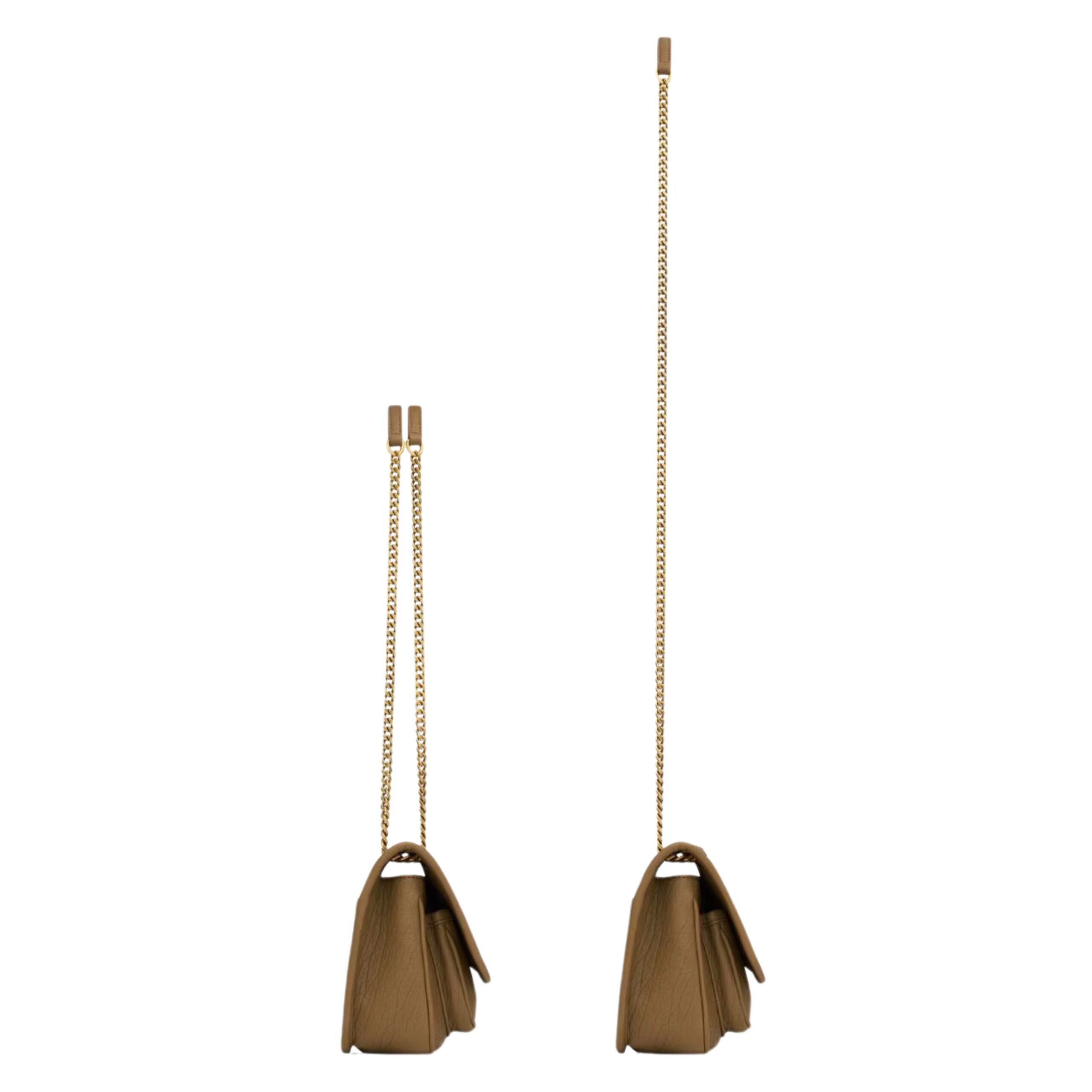 The Niki Mini in Grained Lambskin is a compact yet striking handbag that perfectly encapsulates the edgy elegance of Saint Laurent. Designed with a distinctive silhouette, this mini bag is crafted from high-quality grained lambskin leather that gives it a textured, durable finish while retaining a soft, luxurious feel. The leather’s slightly crinkled appearance adds a vintage touch, making it a timeless piece that only gets better with age.