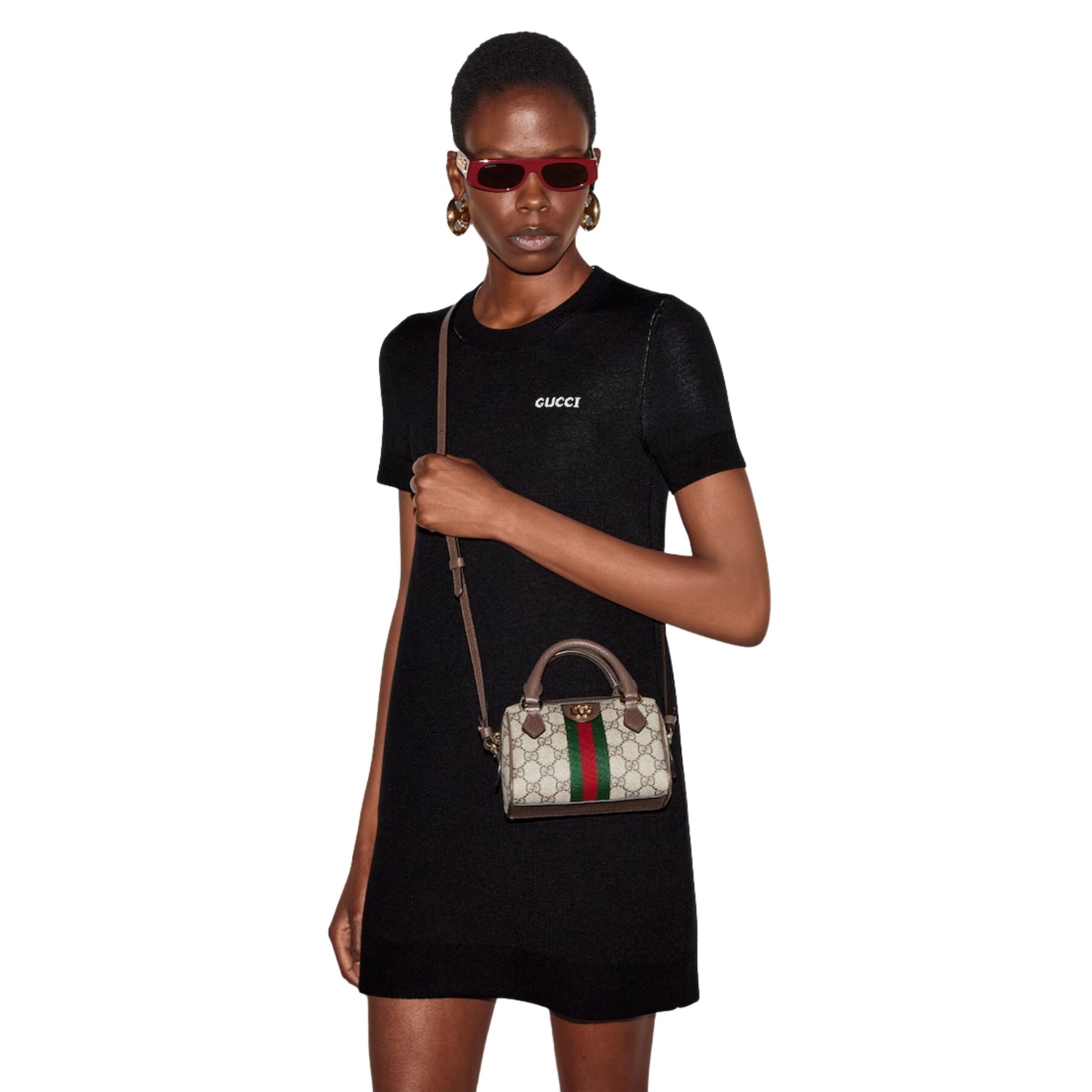 Experience the perfect combination of style, elegance, and practicality with the Ophidia Mini Boston Bag—a must-have accessory that seamlessly blends timeless design with modern functionality, offering both convenience and a touch of luxury in one exquisite piece.