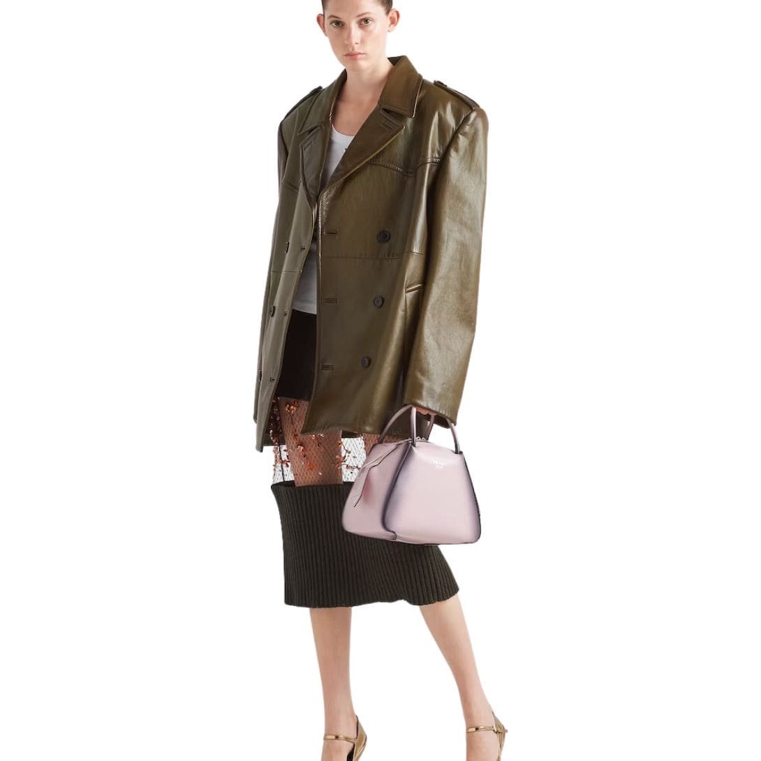 Beyond its aesthetic appeal, the Prada Double Breasted Leather Coat offers practicality and comfort. The luxurious leather not only provides warmth but also molds to the wearer’s body over time, ensuring a personalized fit and unparalleled comfort.