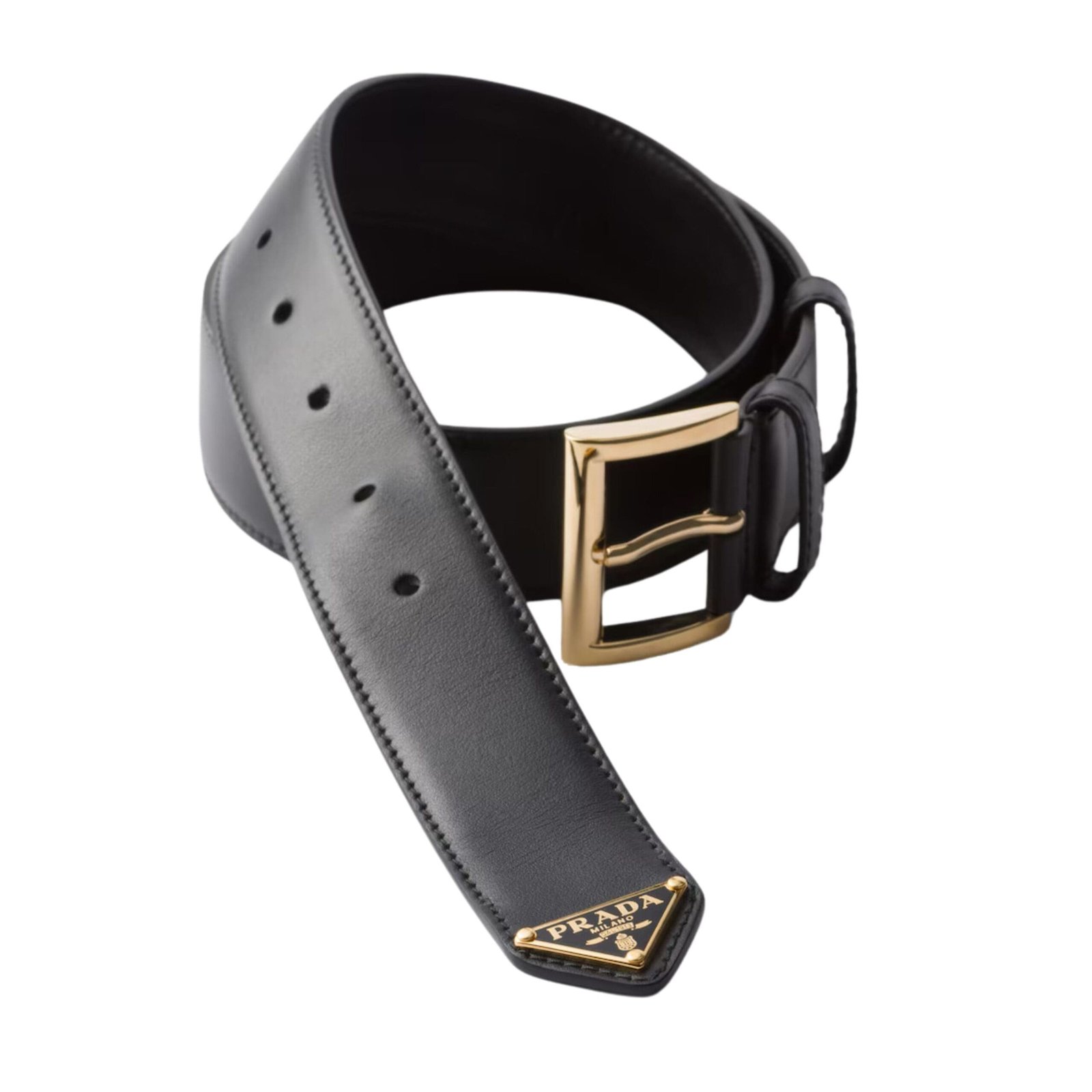 PRADA LEATHER BELT IN GOLDEN BLACK