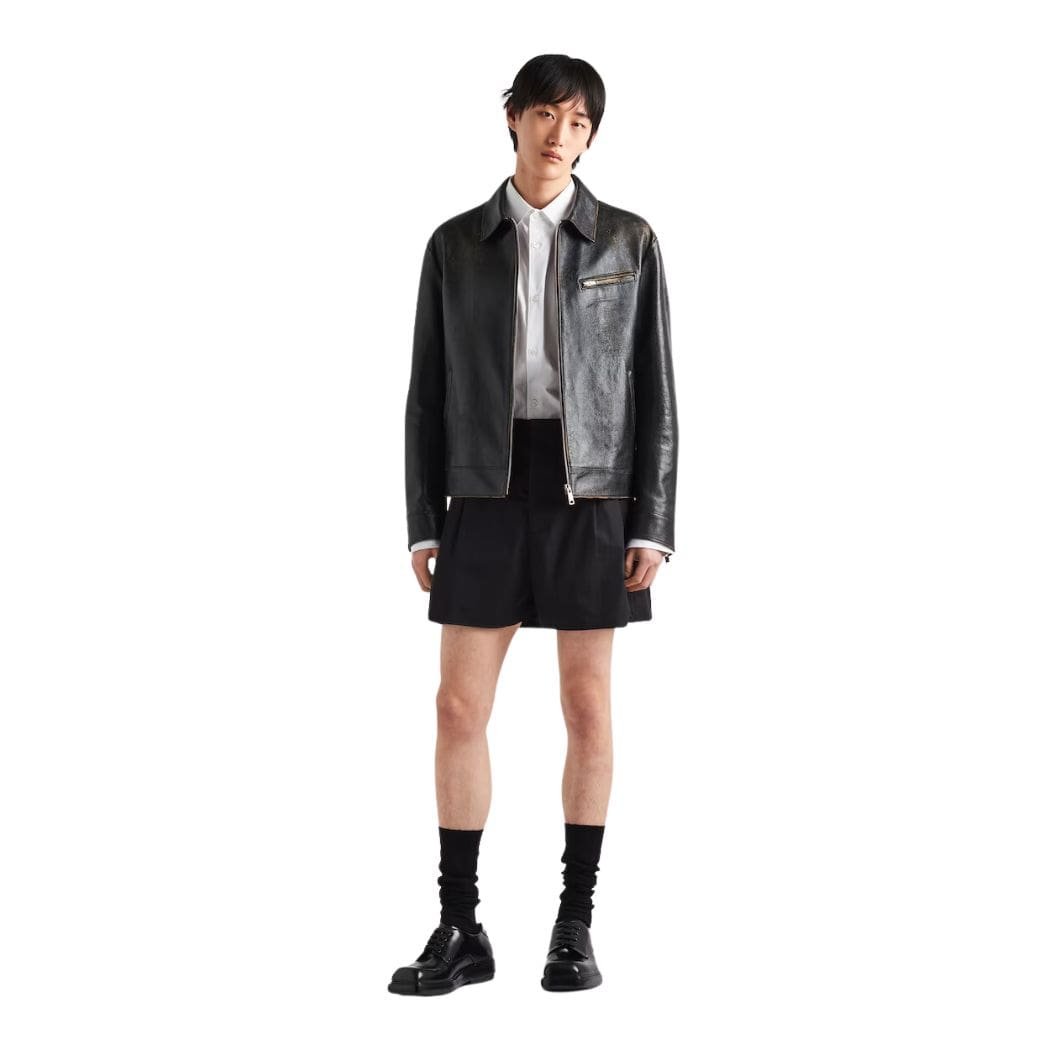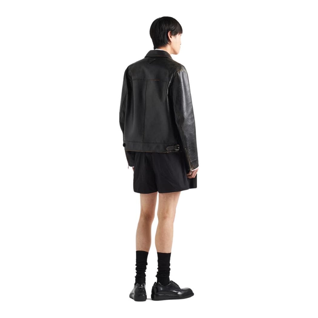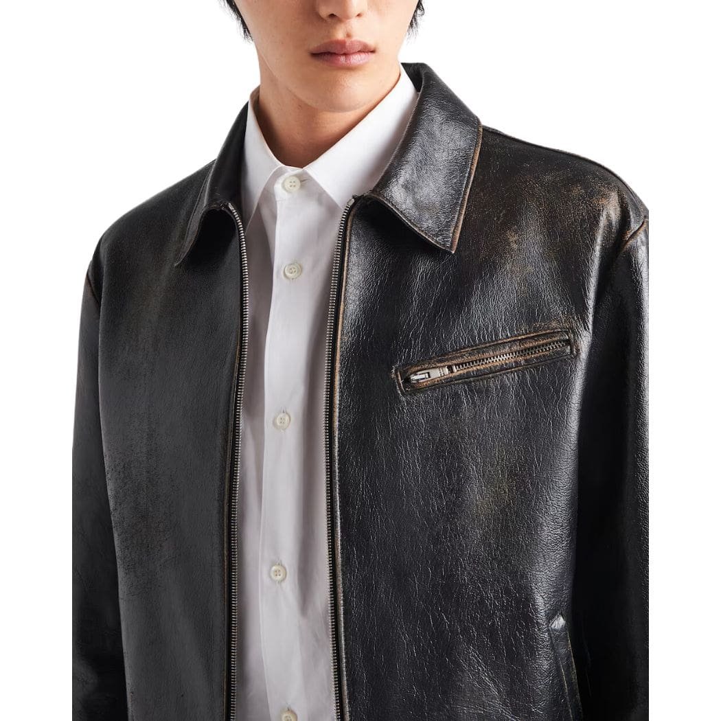 Prada’s leather selection is unparalleled, using only the finest hides that undergo rigorous tanning and finishing processes to achieve a supple texture and rich color depth. This dedication to quality not only enhances the jacket’s aesthetic appeal but also ensures durability, making it a long-term investment in style.