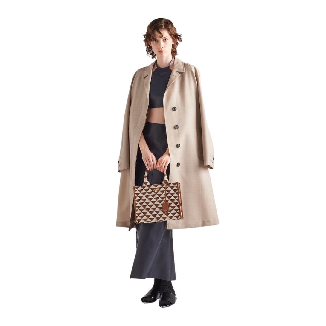 Attention to detail is evident throughout the design, from the precision of the stitching to the subtle embossed Prada logo discreetly placed near the hem. The attention to detail extends to the fit, with careful consideration given to proportions and construction to ensure a comfortable and flattering fit for all body types.