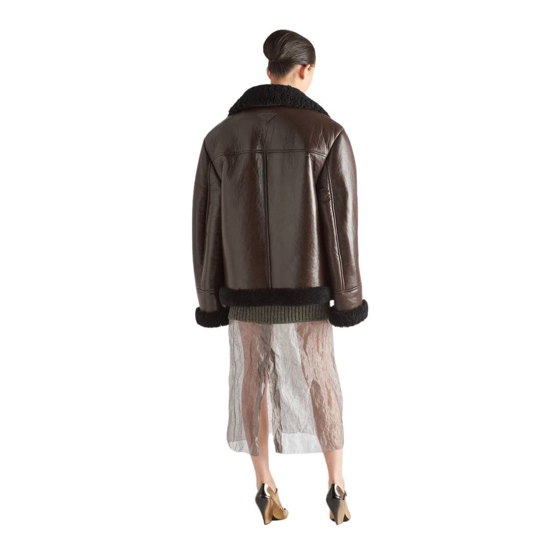 PRADA OVERSIZED SHEARLING JACKET IN COFFEE BLACK