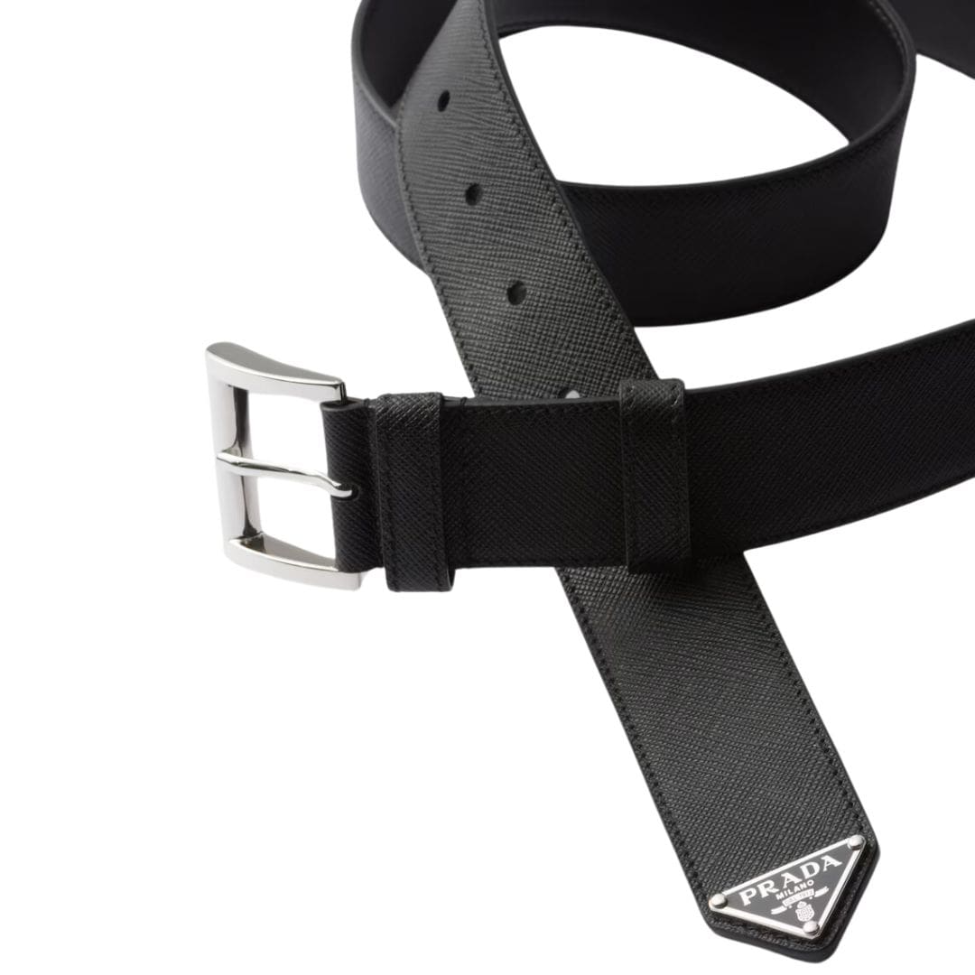 In summary, the Prada Saffiano Leather Belt is more than just an accessory; it is a statement of luxury, durability, and sophisticated fashion. Its timeless design, coupled with the unparalleled quality of Saffiano leather, makes it a must-have for those who appreciate the finer things in life. Whether worn to elevate a formal outfit or to add a touch of elegance to a casual look, this belt embodies the essence of Prada’s storied heritage and innovative spirit.