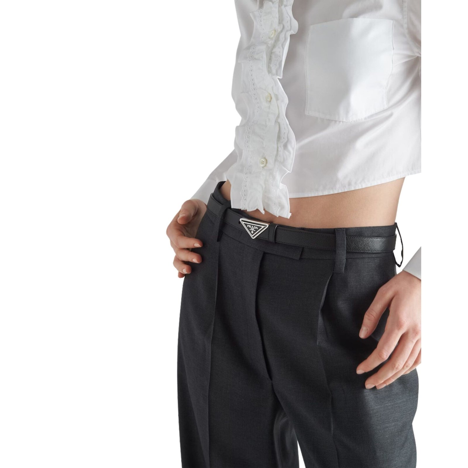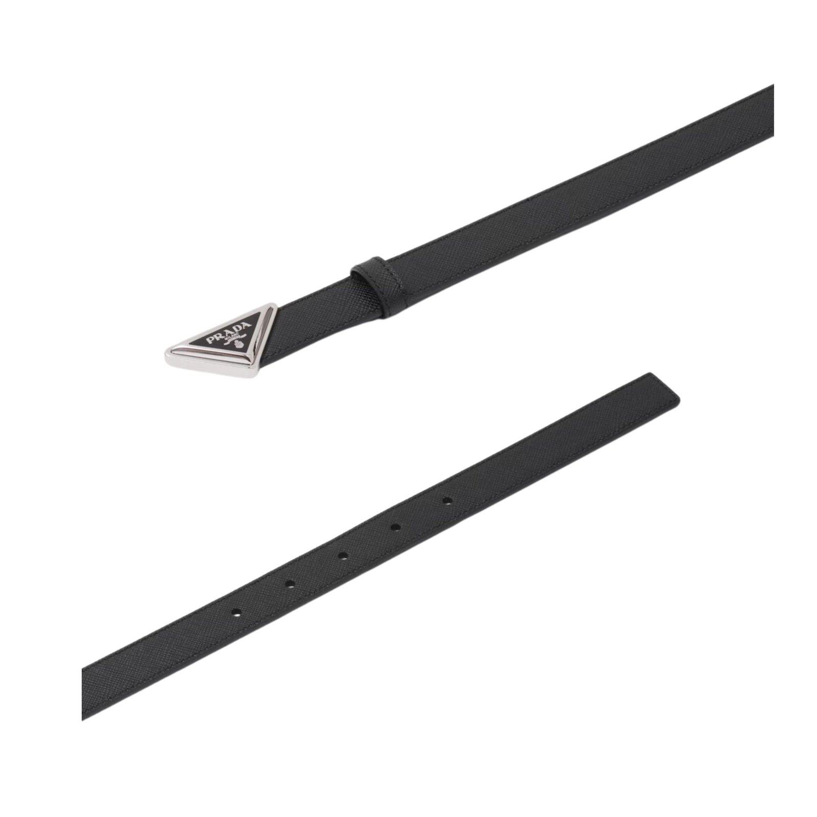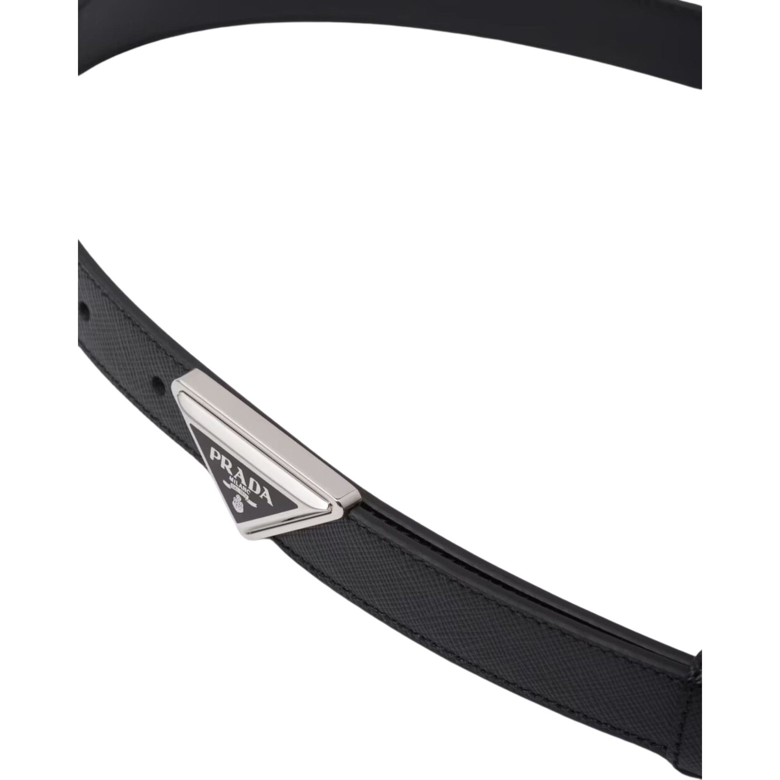 Delve into the epitome of elegance with our meticulously crafted Prada Saffiano Leather Belt In Black belt, distinguished by its sleek and refined design. Embracing sophistication, it features a metal buckle reminiscent of our iconic triangle logo, adding a touch of heritage to its contemporary allure.