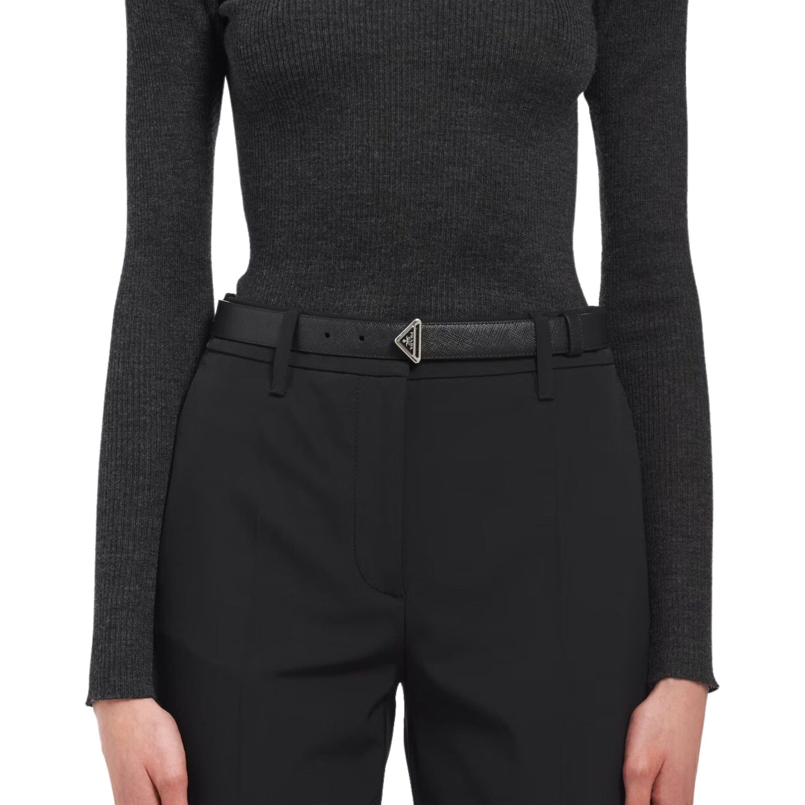Crafted from our signature Saffiano leather, renowned for its distinctive crosshatch texture and luxurious waxed finish, Prada Saffiano Leather Belt In Black exudes elegance and durability in equal measure.