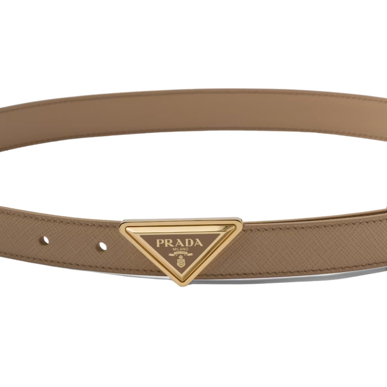 Explore the rich heritage of Prada Saffiano Leather Belt In Brown, featuring the historic enameled triangle logo—a symbol introduced by Mario Prada on trunks in 1913. This emblematic logo adorns the buckle, infusing it with a sense of tradition and prestige that spans over a century.