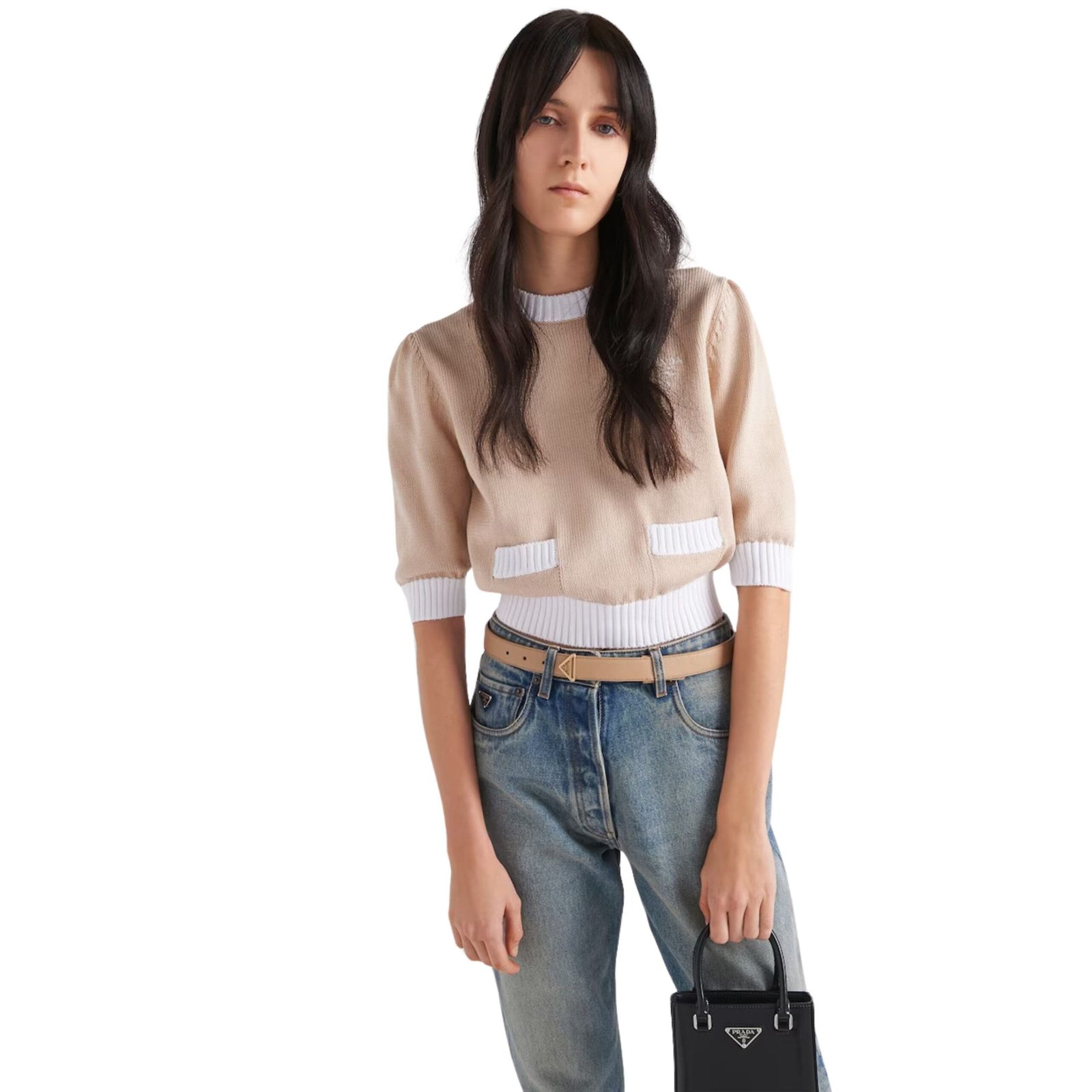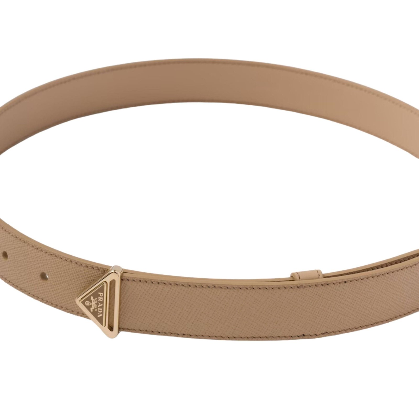 In a timeless sand beige hue, this belt is crafted from luxurious Prada Saffiano Leather Belt In Light Brown, renowned for its durability and distinctive crosshatch texture. The focal point is the iconic logo plaque, proudly showcasing the renowned Prada triangle emblem, a symbol of excellence and prestige.