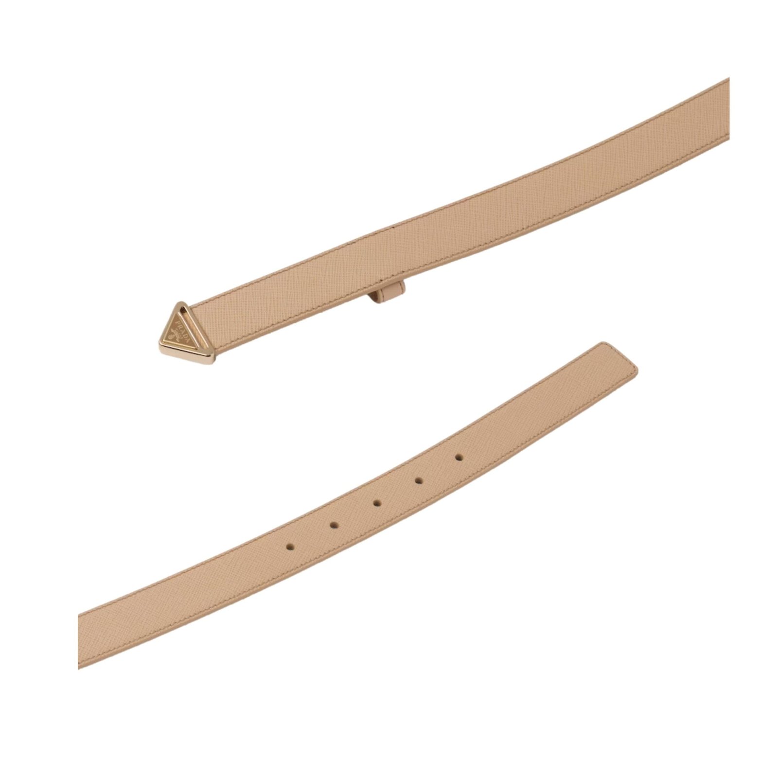 Embrace the essence of luxury with the Prada Triangle-Logo Leather Belt, where impeccable craftsmanship meets timeless design.