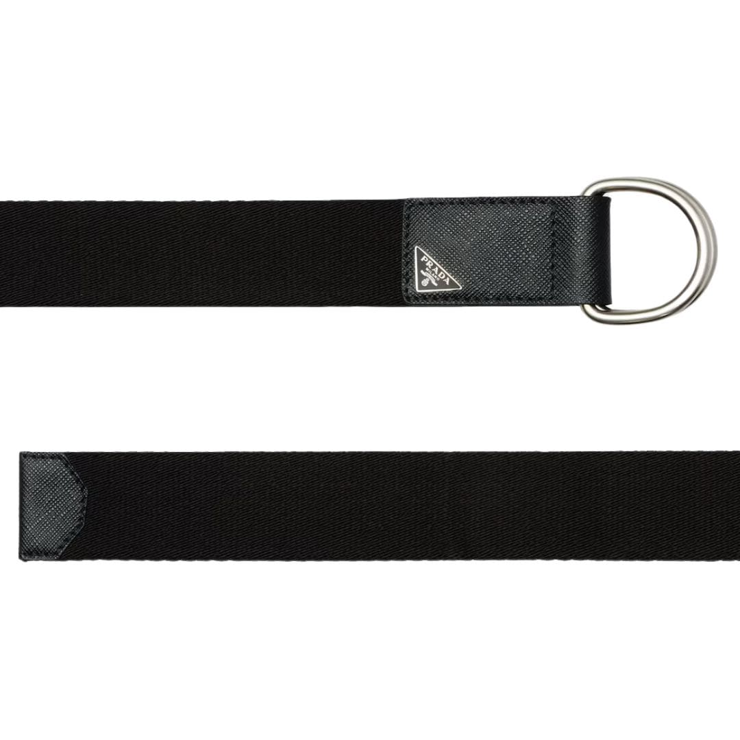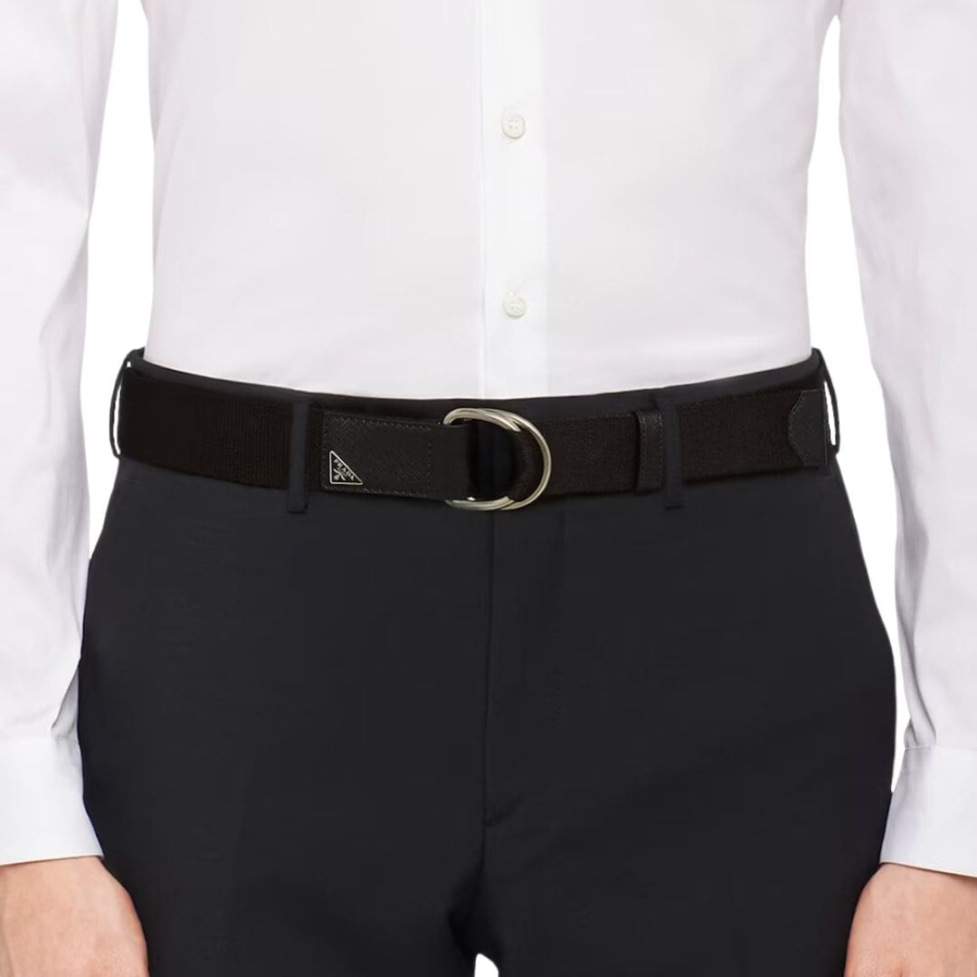Crafted for the modern individual, this nylon belt epitomizes contemporary style with its sleek design and thoughtful details. The centerpiece of this accessory is its double ring buckle, which not only adds a touch of sophistication but also ensures a secure and adjustable fit. Complementing the buckle is an enameled metal triangle logo, serving as a subtle yet distinctive embellishment that catches the eye.
