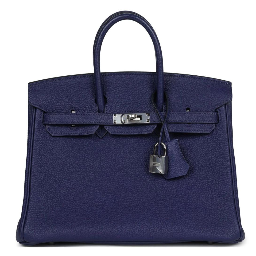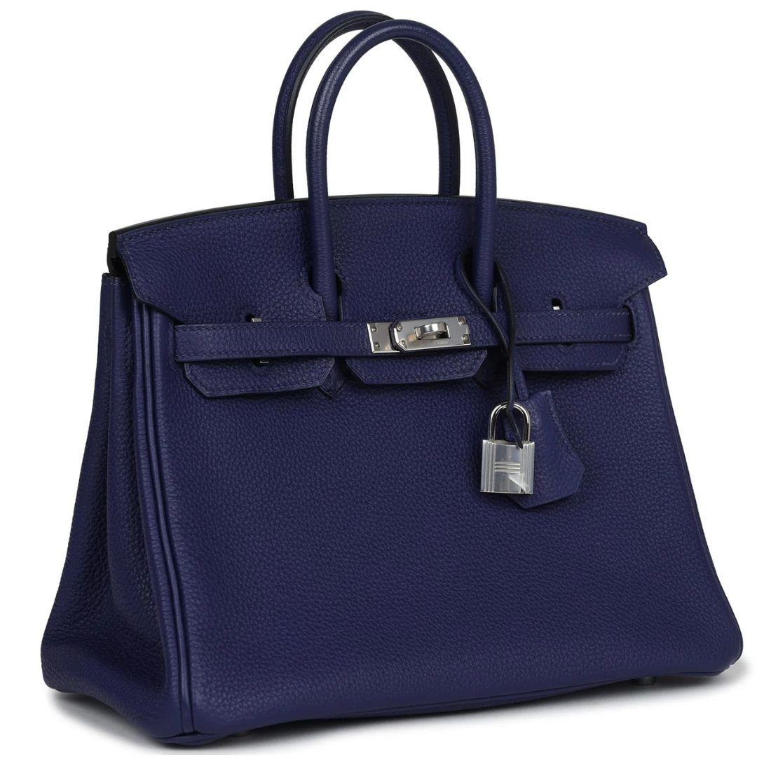 PRE-OWNED HERMÈS BIRKIN 25 BLEU ENCRE TOGO PALLADIUM HARDWARE