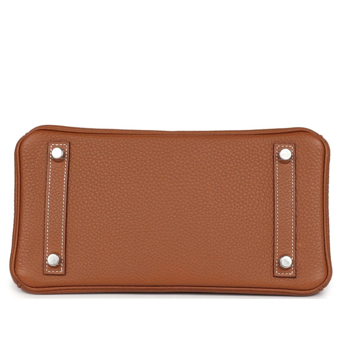 This Birkin is crafted in Gold Togo leather, a signature Hermès material known for its durable and supple grain, and paired with palladium hardware. It features contrast stitching, a front flap, two straps with a center toggle closure, a clochette with a lock and two keys, and double rolled handles for timeless elegance.