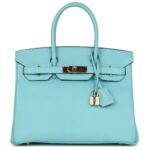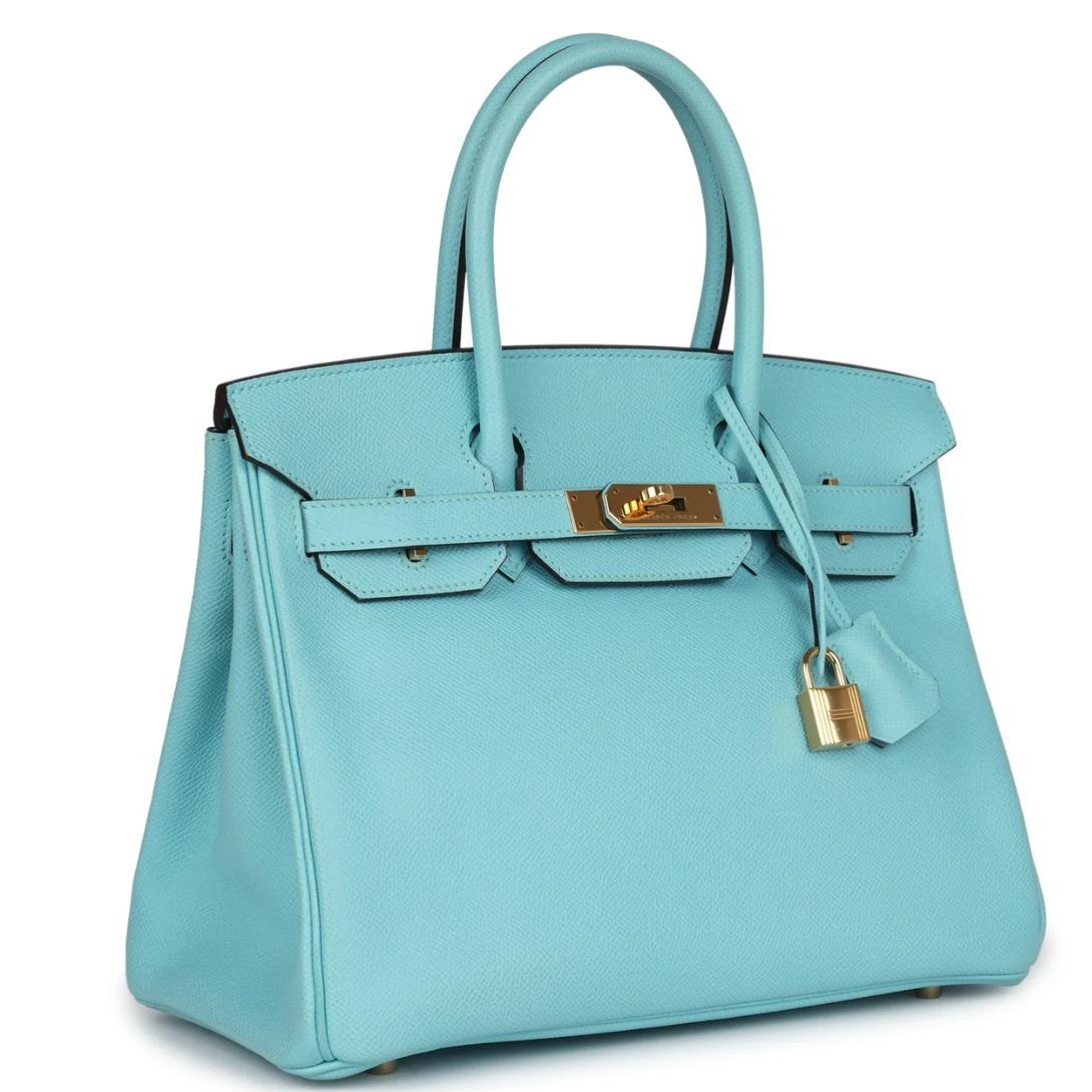 PRE-OWNED HERMÈS BIRKIN 30 BLEU ATOLL EPSOM GOLD HARDWARE