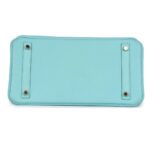 The interior is lined in Bleu Atoll Chevre leather, adding a luxurious touch. It includes a zip pocket with an Hermès-engraved zipper pull and an open pocket on the opposite side for convenient organization.