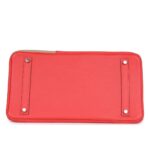 The interior is lined with Argile Chevre leather, offering a luxurious and durable finish. It has one zip pocket with an Hermès engraved zipper pull and an open pocket on the opposite side, providing ample space for organization.