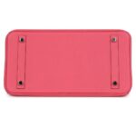 The interior is lined with Rose Azalee chèvre leather and includes one zip pocket with an Hermès-engraved pull and one open pocket on the opposite side for functional organization.