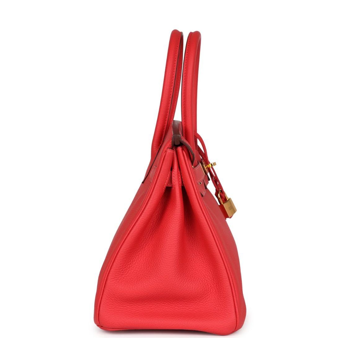 PRE-OWNED HERMÈS BIRKIN 30 ROUGE PIVOINE TOGO GOLD HARDWARE