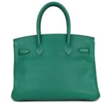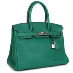 This Birkin combines luxury with practicality, offering a timeless design in a vibrant Vert Vertigo hue and excellent condition.