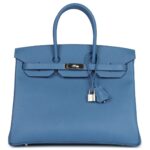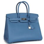 PRE-OWNED HERMÈS BIRKIN 35 BLEU AZUR EPSOM PALLADIUM HARDWARE