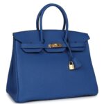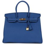PRE-OWNED HERMÈS BIRKIN 35 BLEU ROYAL TOGO GOLD HARDWARE
